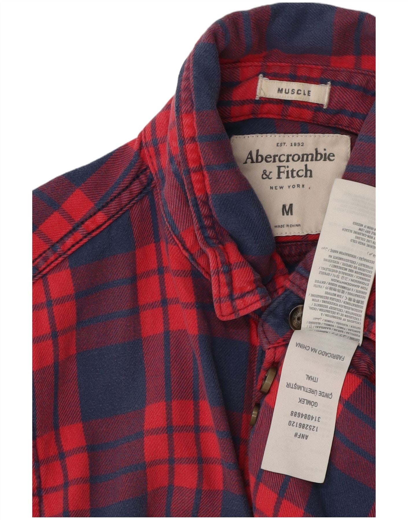ABERCROMBIE & FITCH Mens Muscle Flannel Shirt Medium Red Check Cotton