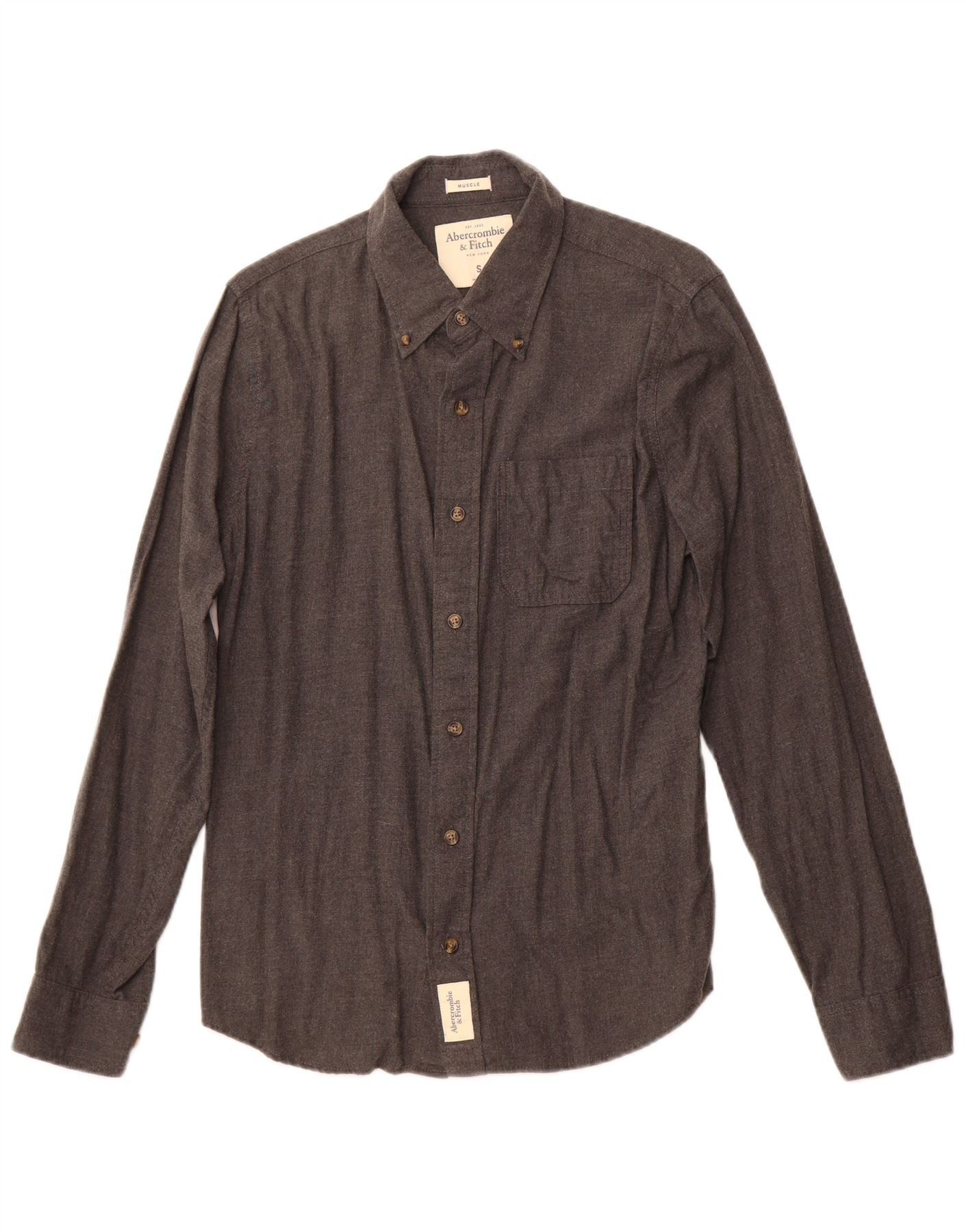 Camisa muscular masculina ABERCROMBIE & FITCH pequena algodão cinza