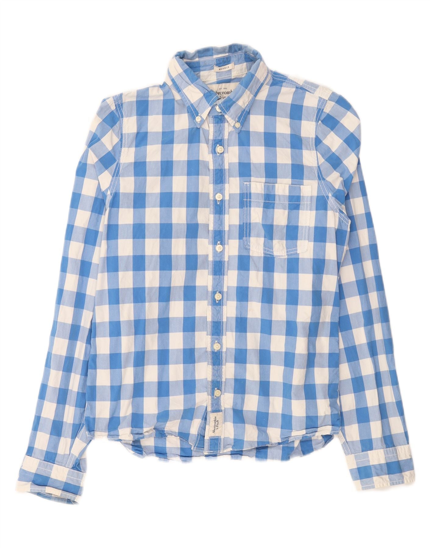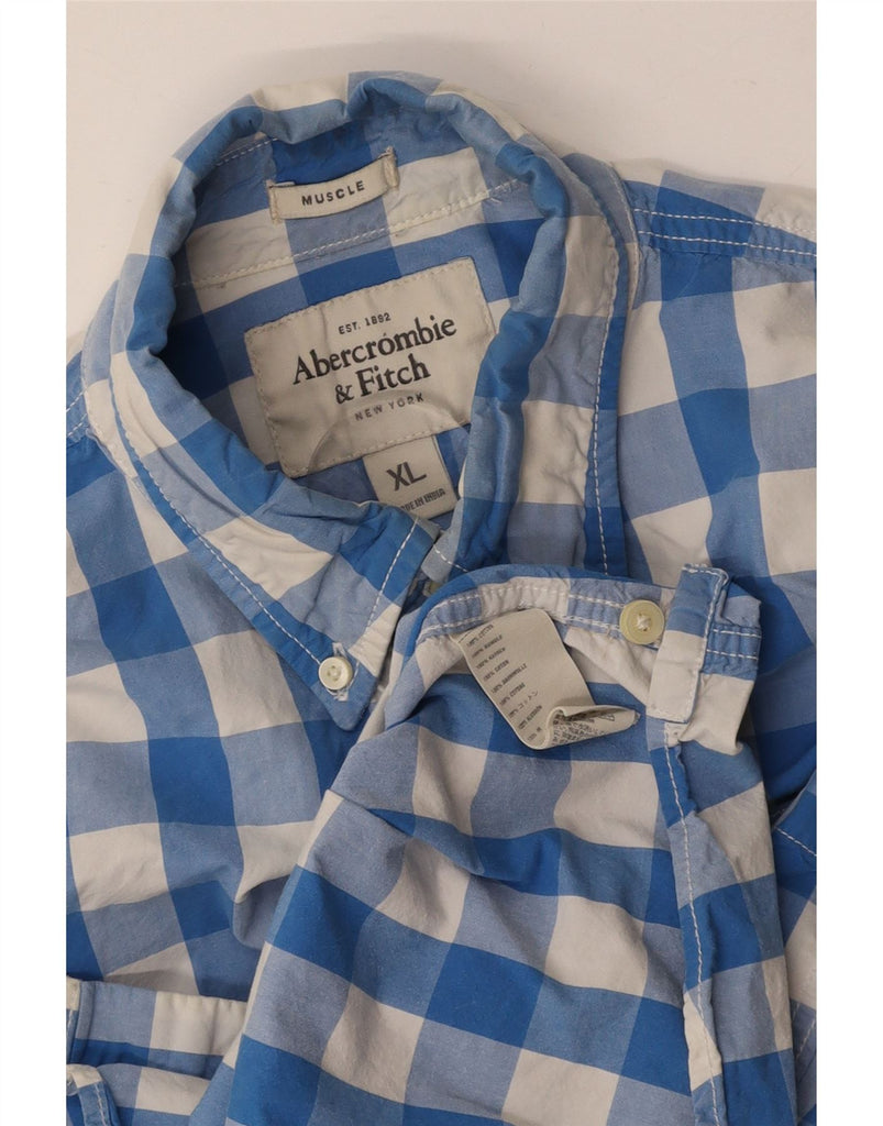 Camisa muscular masculina ABERCROMBIE & FITCH XL de algodão xadrez azul