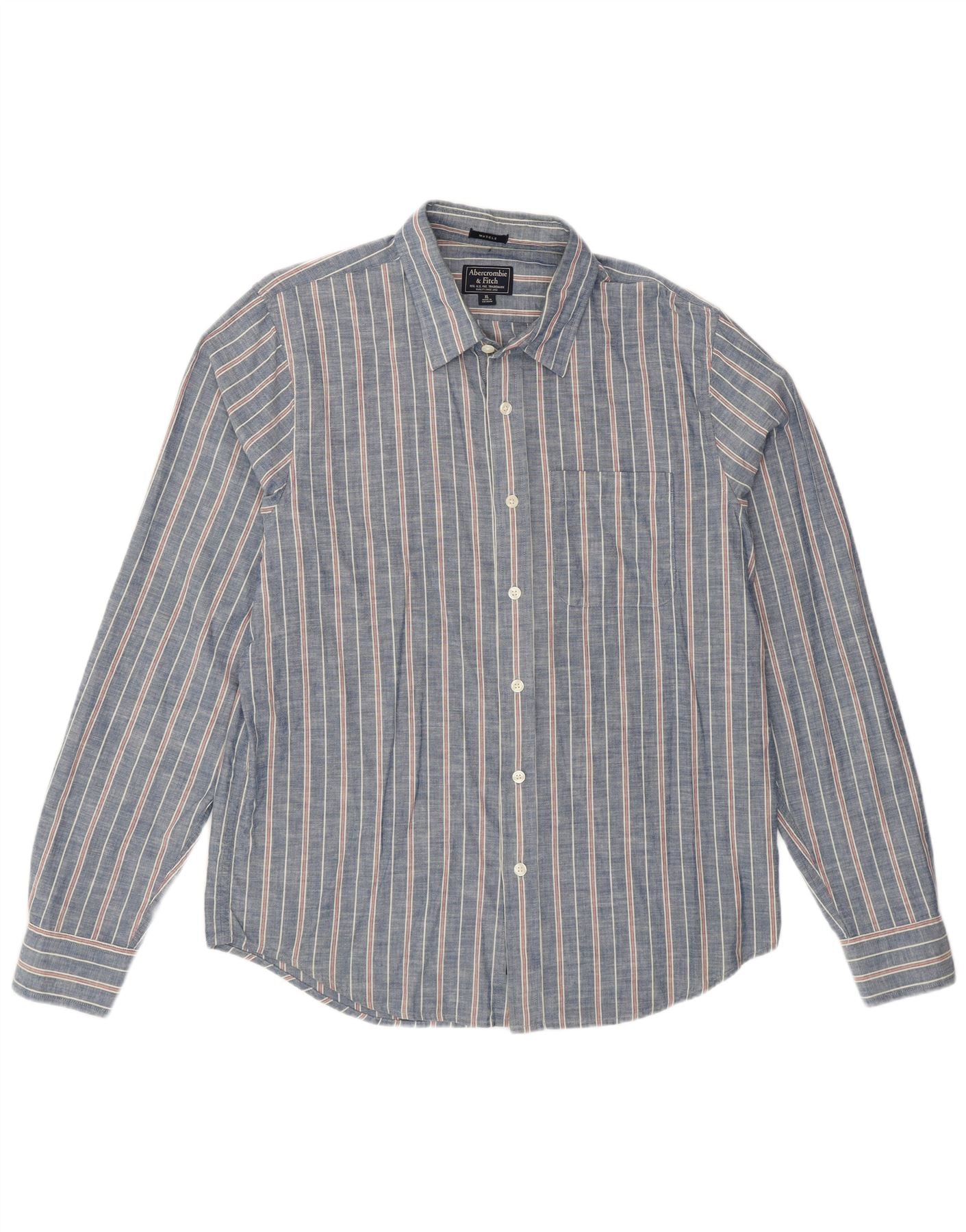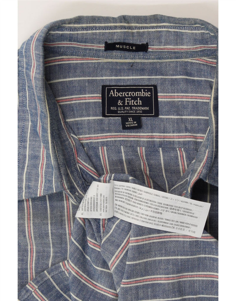 Camisa muscular masculina ABERCROMBIE & FITCH XL azul risca de giz algodão