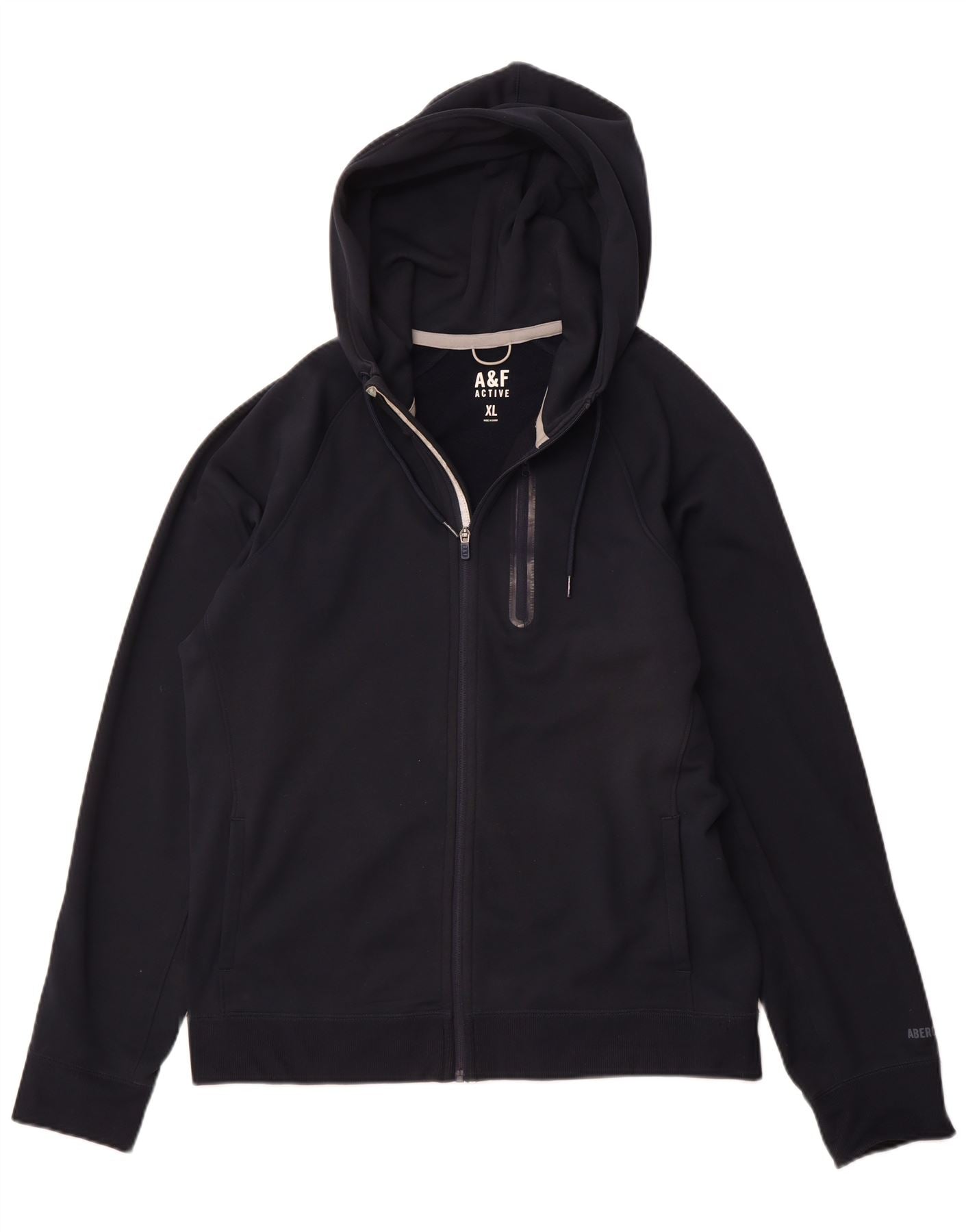 Suéter masculino com capuz e zíper ABERCROMBIE & FITCH XL azul marinho poliéster