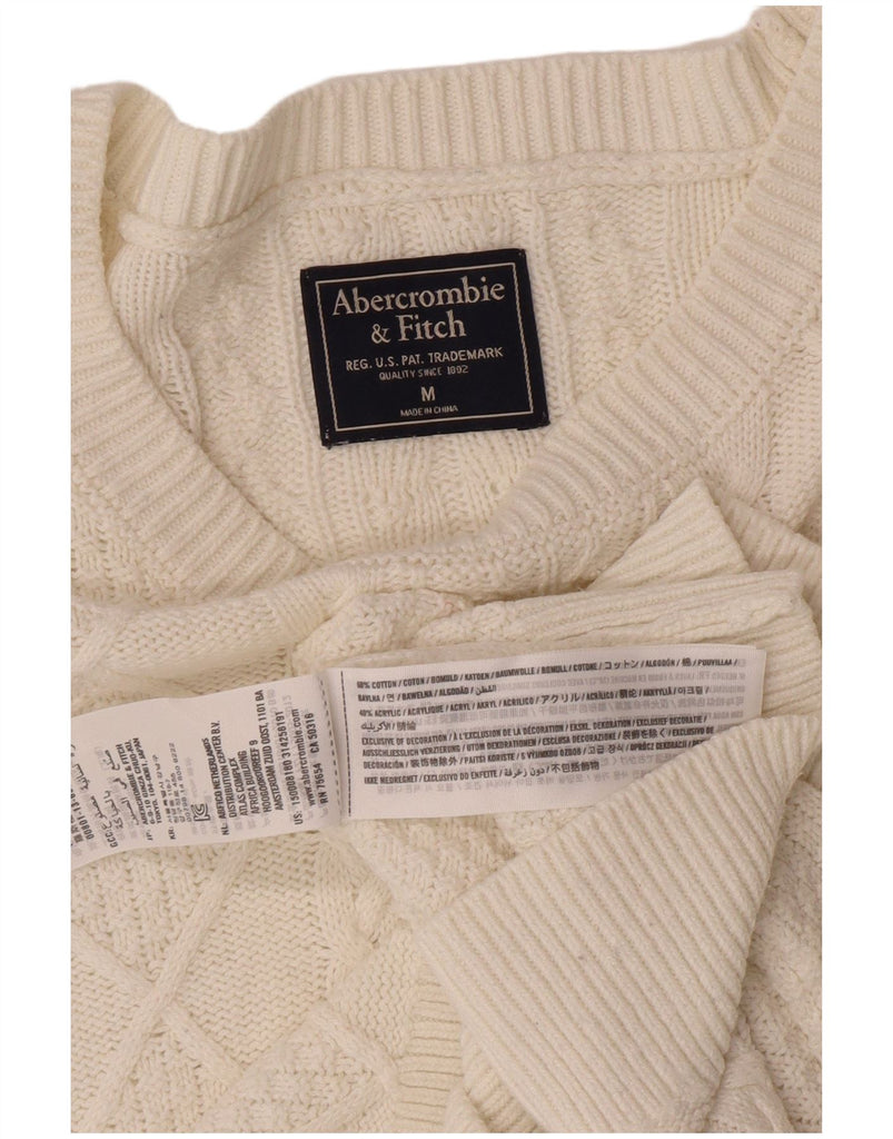 Suéter feminino ABERCROMBIE & FITCH com gola redonda Reino Unido 14 médio branco