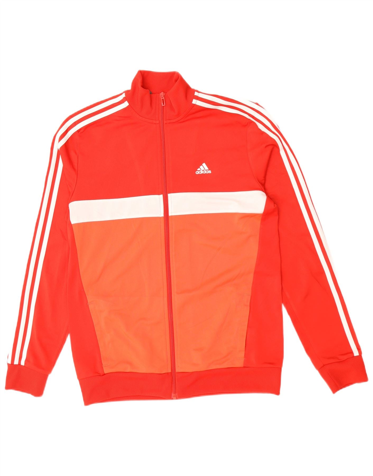 ADIDAS Boys Aeroready Tracksuit Top Jacket 15-16 Years Orange Colourblock