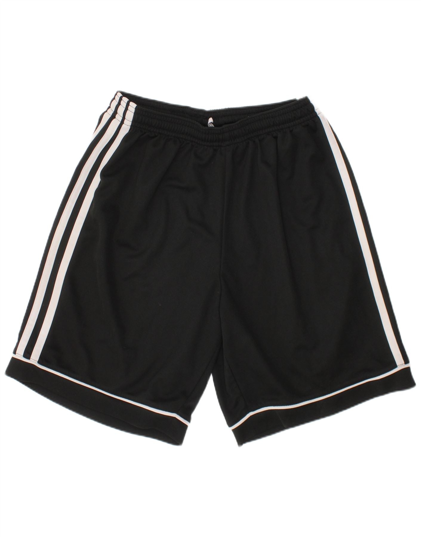 - Descrição da IA: Este short masculino da Adidas é confeccionado em camisa de poliéster preta leve e respirável. Eles apresentam uma cintura elástica para um ajuste confortável e atlético. O corte regular garante facilidade de movimento. Listras brancas clássicas percorrem cada lado, adicionando um detalhe esportivo exclusivo. A bainha está bem acabada. Projetados para uso ativo, esses shorts oferecem conforto e estilo para jovens atletas.