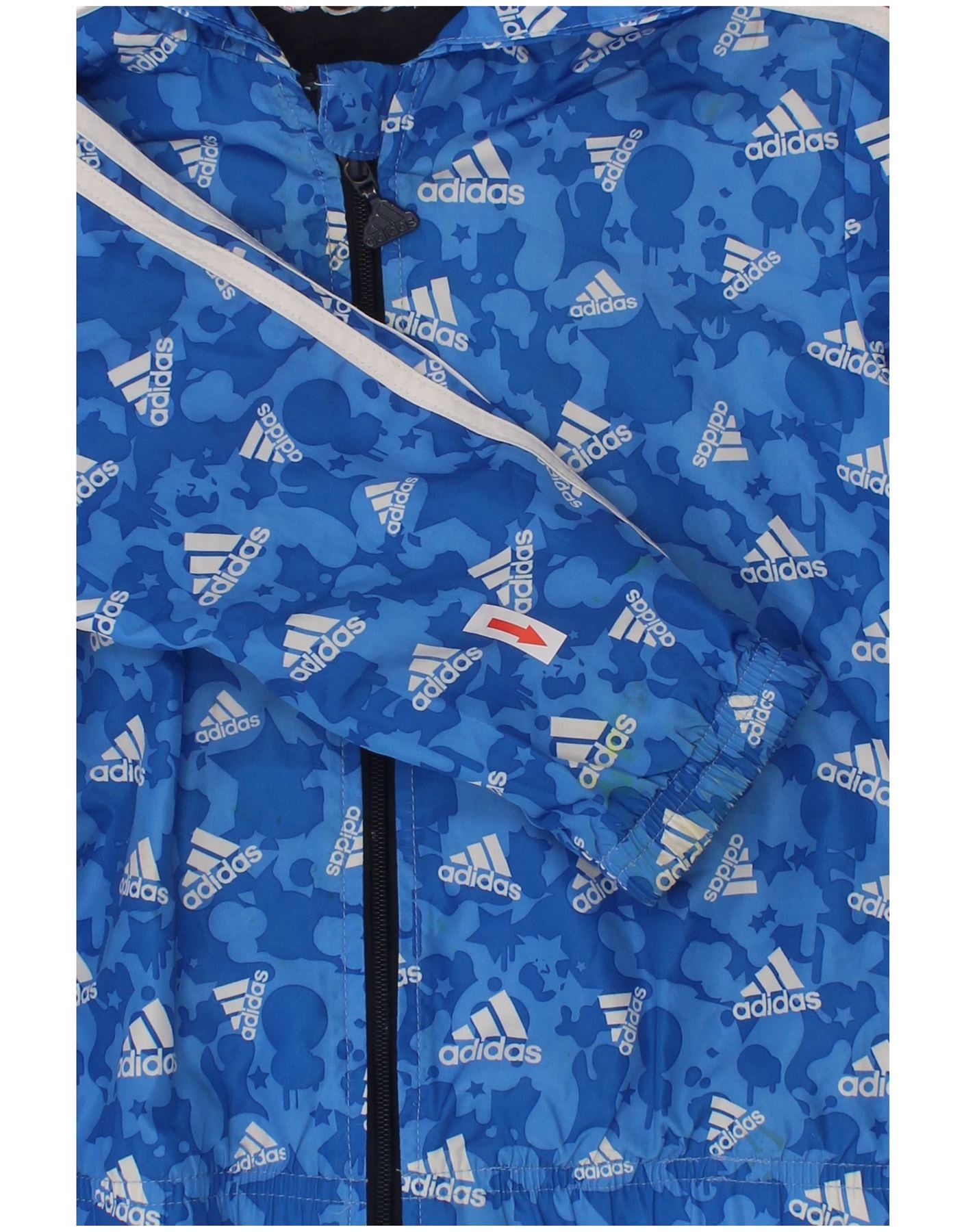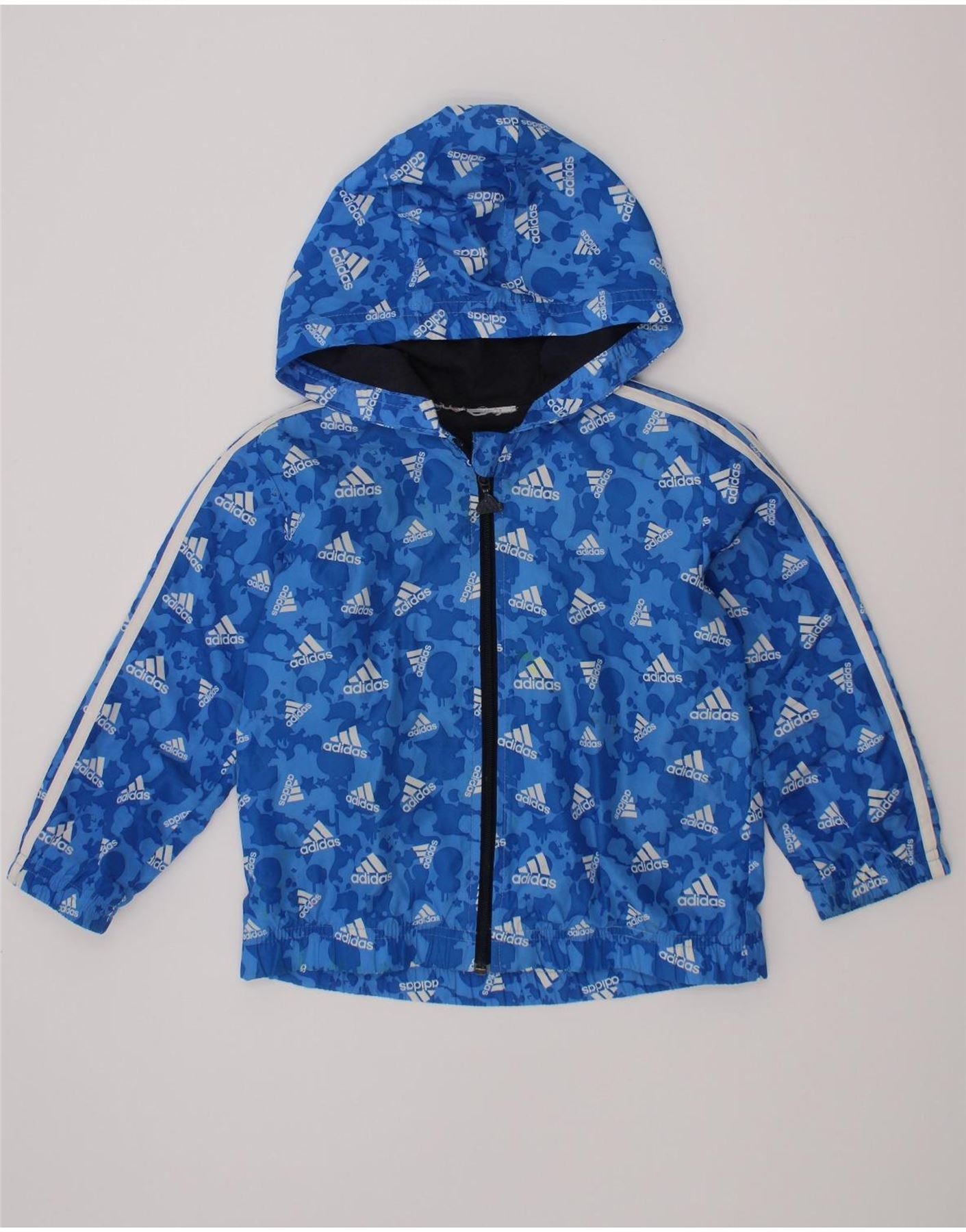 Jaqueta corta-vento com capuz gráfico Adidas Boys 2-3 anos azul poliéster