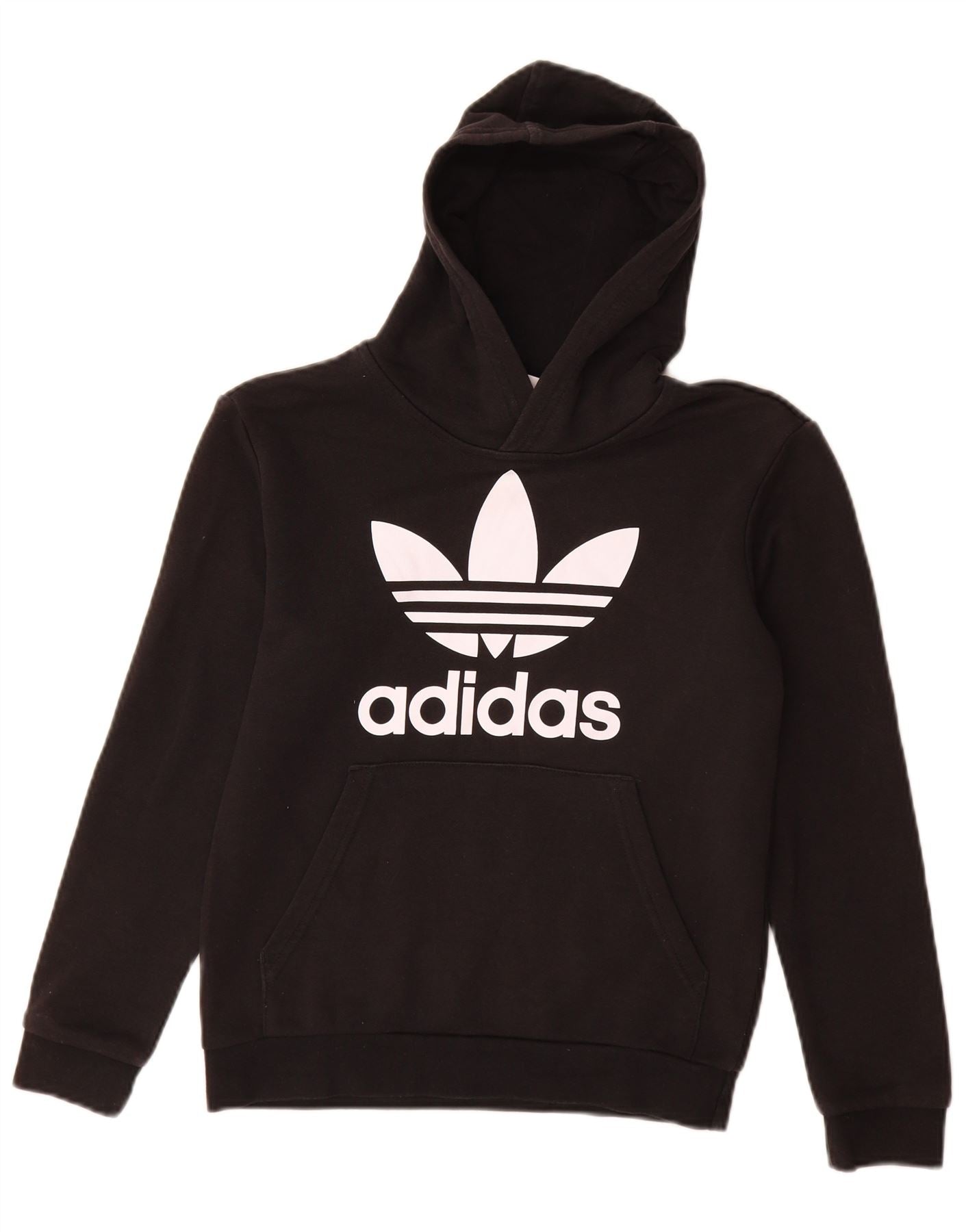 ADIDAS Meninos Graphic Hoodie Jumper 11-12 Anos Preto Algodão