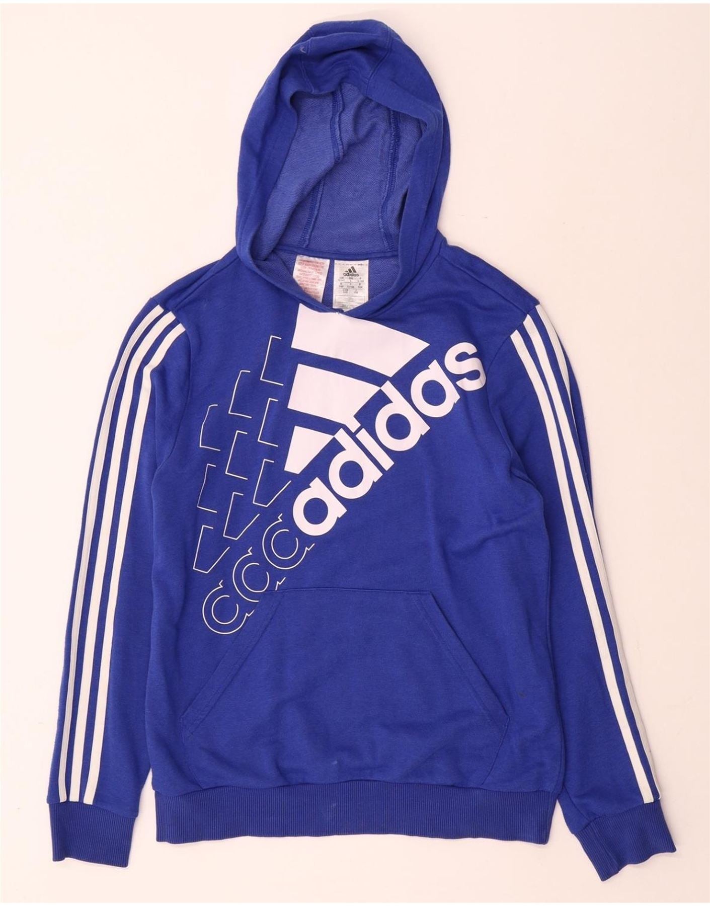 ADIDAS Meninos Graphic Hoodie Jumper 13-14 Anos Azul Algodão