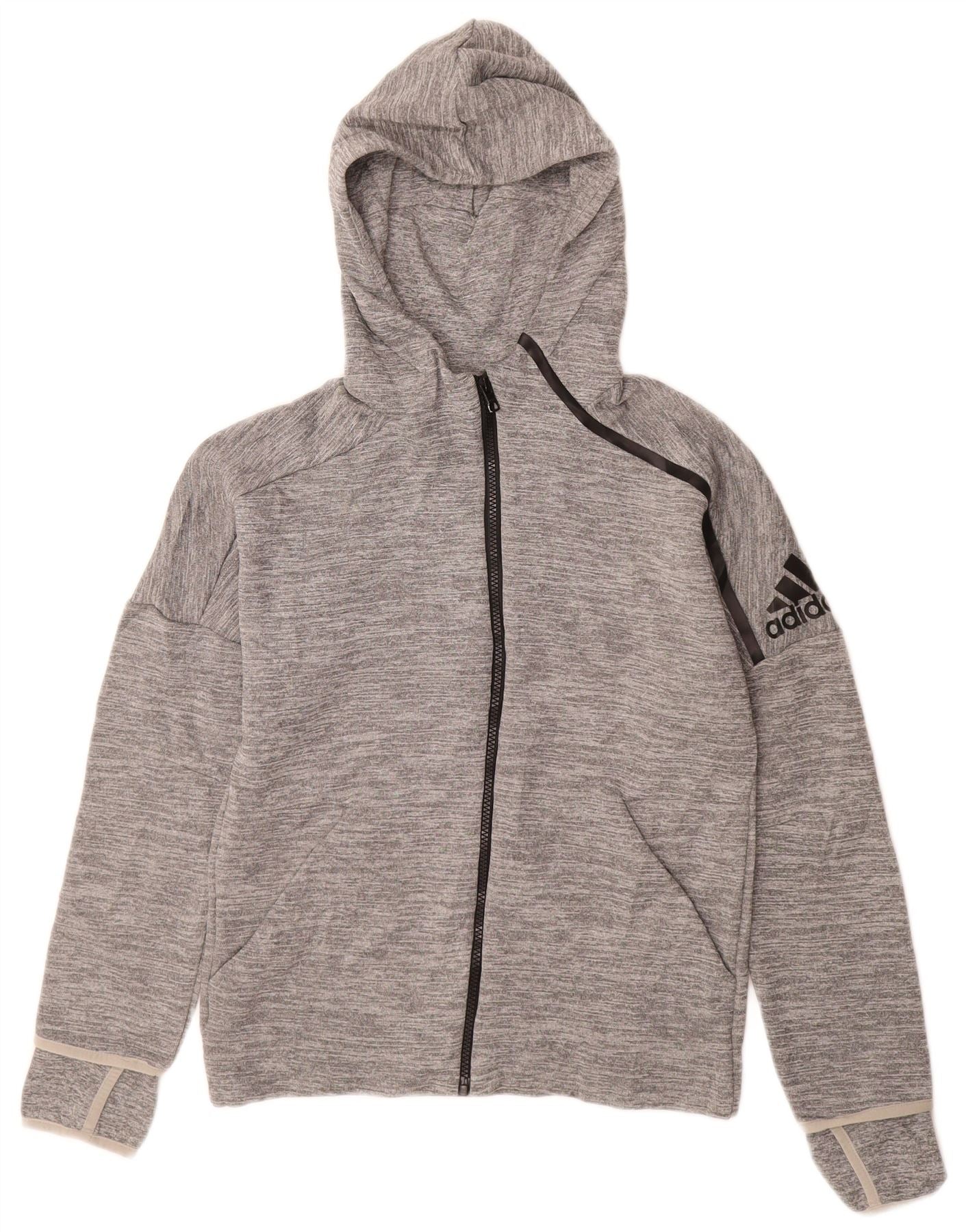 Suéter Adidas Boys Graphic Zip com capuz 11-12 anos Poliéster cinza manchado