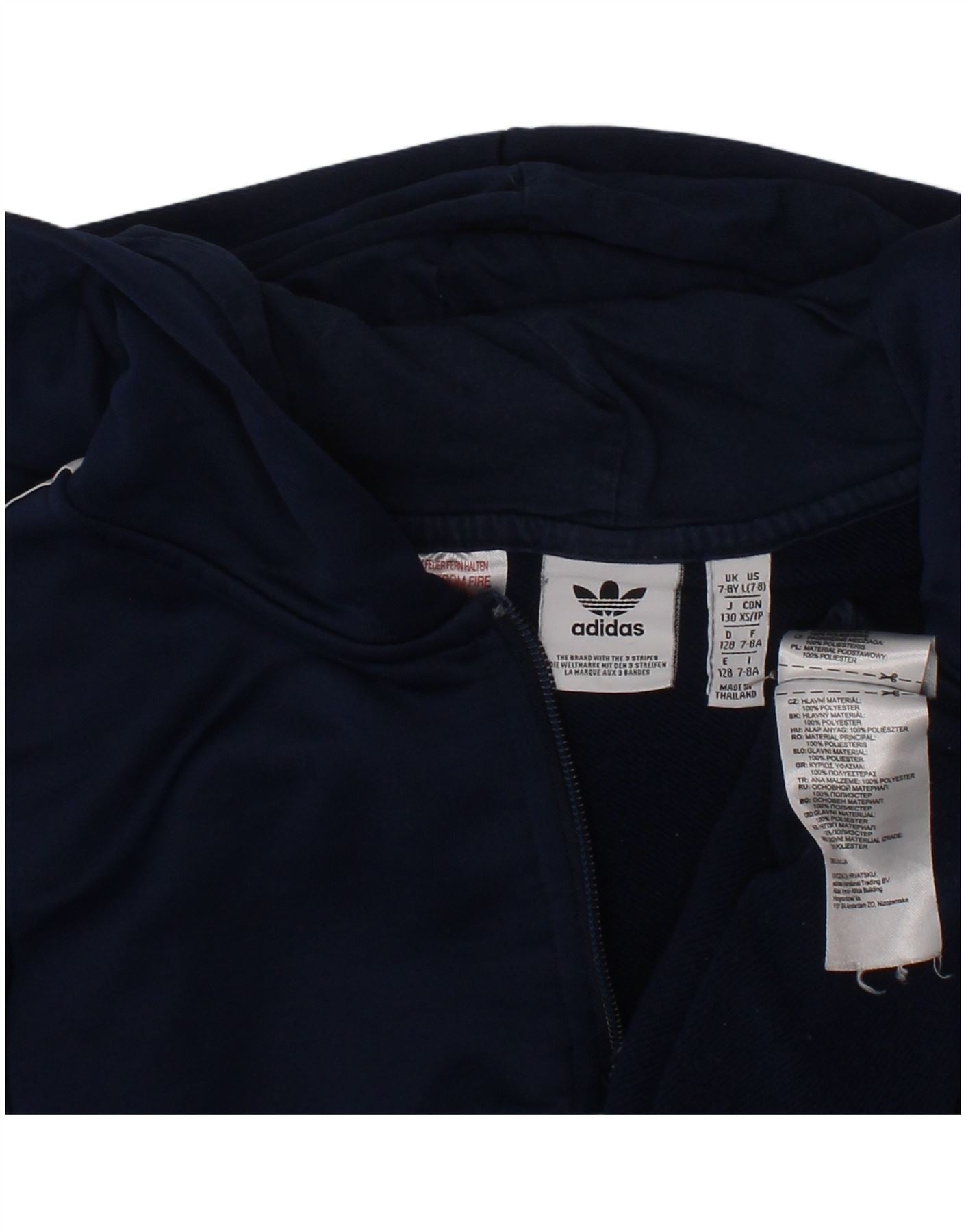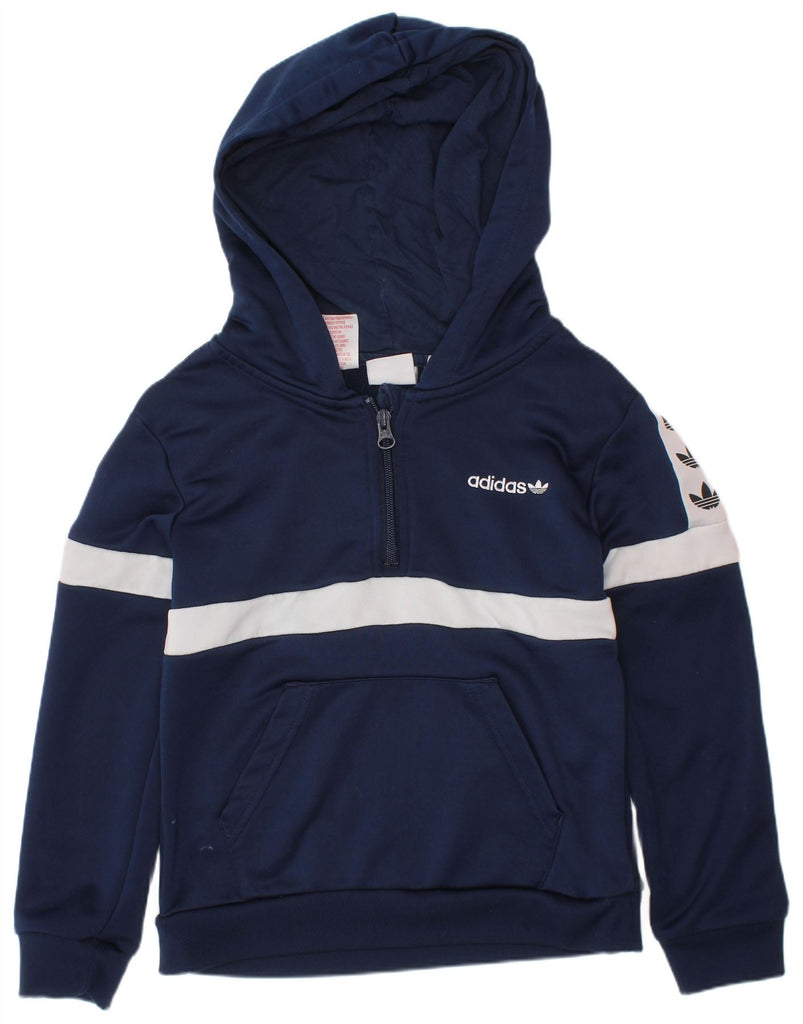 ADIDAS Meninos Graphic Zip Neck Hoodie Jumper 7-8 Anos Azul Marinho Colourblock