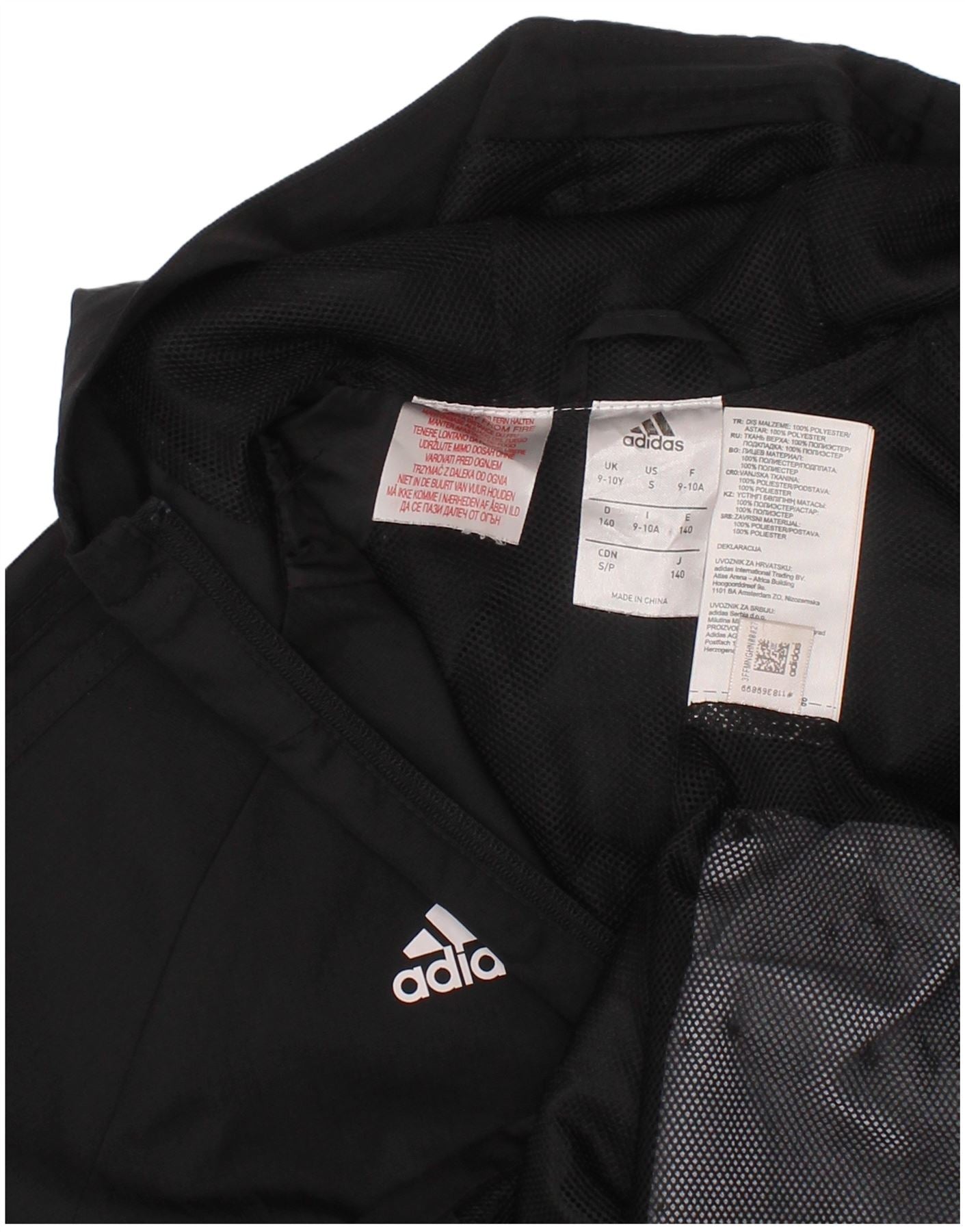 Jaqueta de chuva com capuz de futebol irlandês para meninos ADIDAS 9-10 anos preto poliéster
