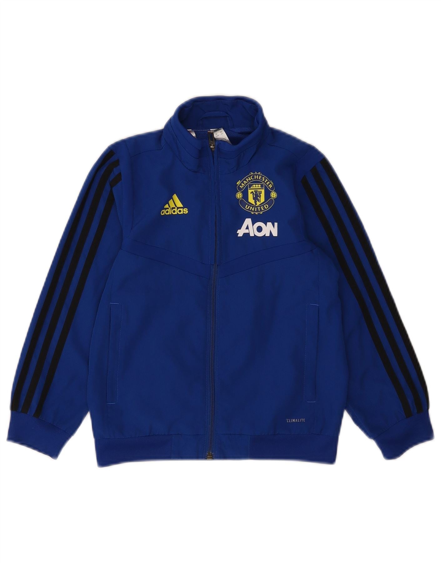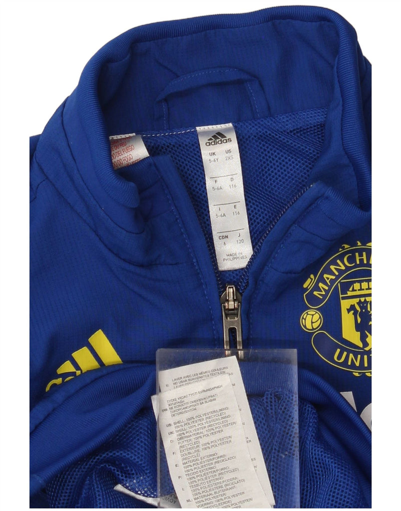 ADIDAS Boys Manchester United Graphic Tracksuit Top Jacket 5-6 Years Blue