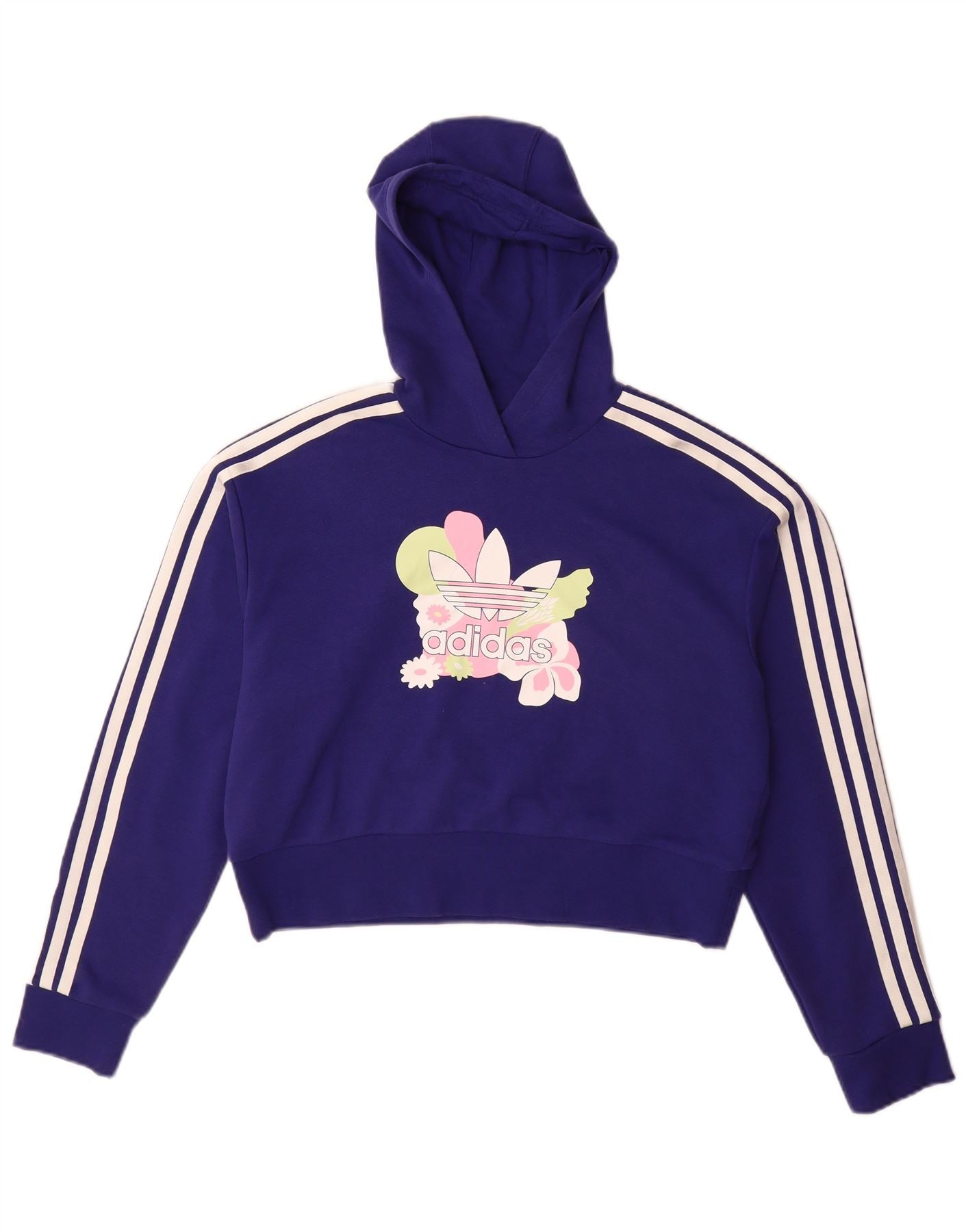 ADIDAS Meninas Crop Graphic Hoodie Jumper 13-14 Anos Roxo Floral Algodão