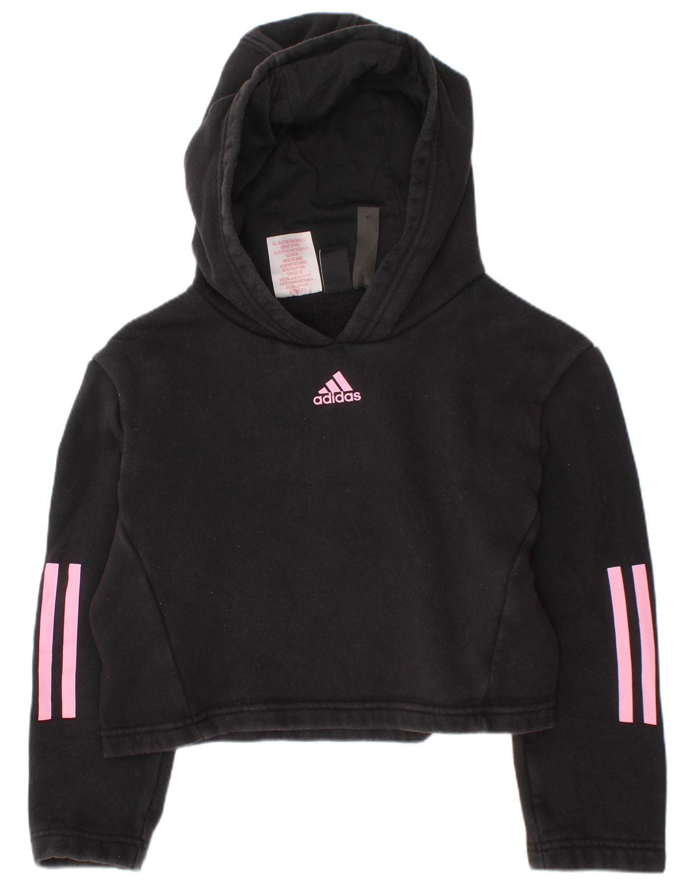 ADIDAS Meninas Crop Hoodie Jumper 7-8 Anos Preto Algodão