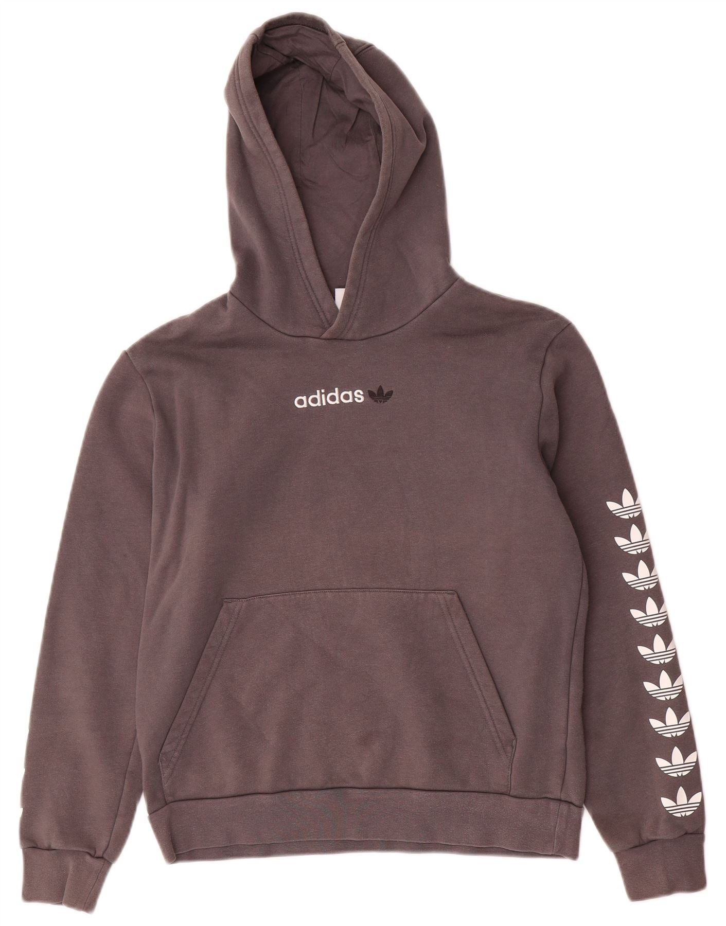 ADIDAS Meninas Graphic Hoodie Jumper 13-14 Anos Cinza Algodão