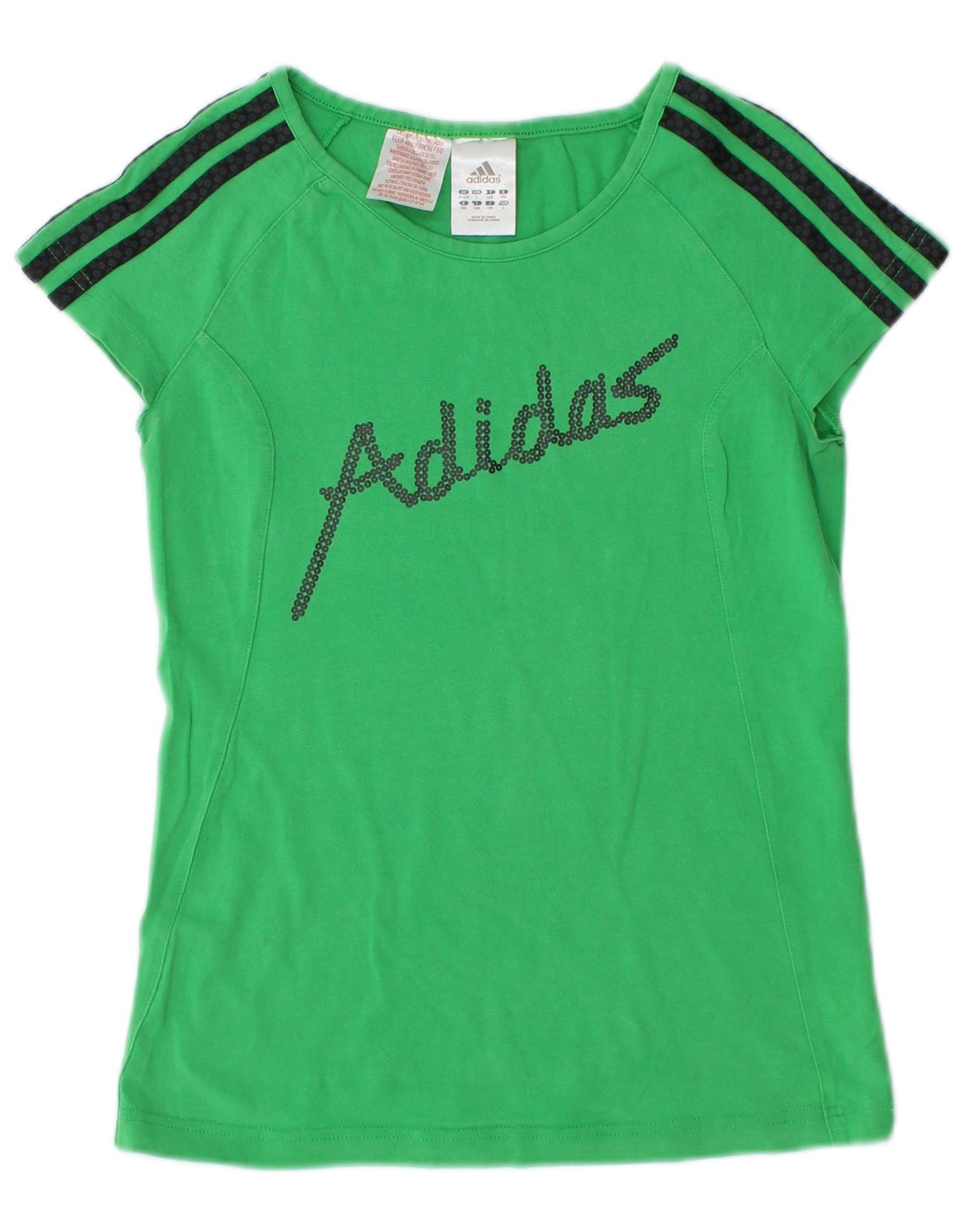 - AI Description: This Adidas girls' graphic T-shirt top is crafted from a soft cotton blend, offering comfort and stretch. The blended fabric has a smooth, jersey-like texture. It features a classic round neck and short sleeves. The regular fit ensures ease of movement. A prominent logo accent adds a sporty touch. This pullover style is perfect for everyday wear.