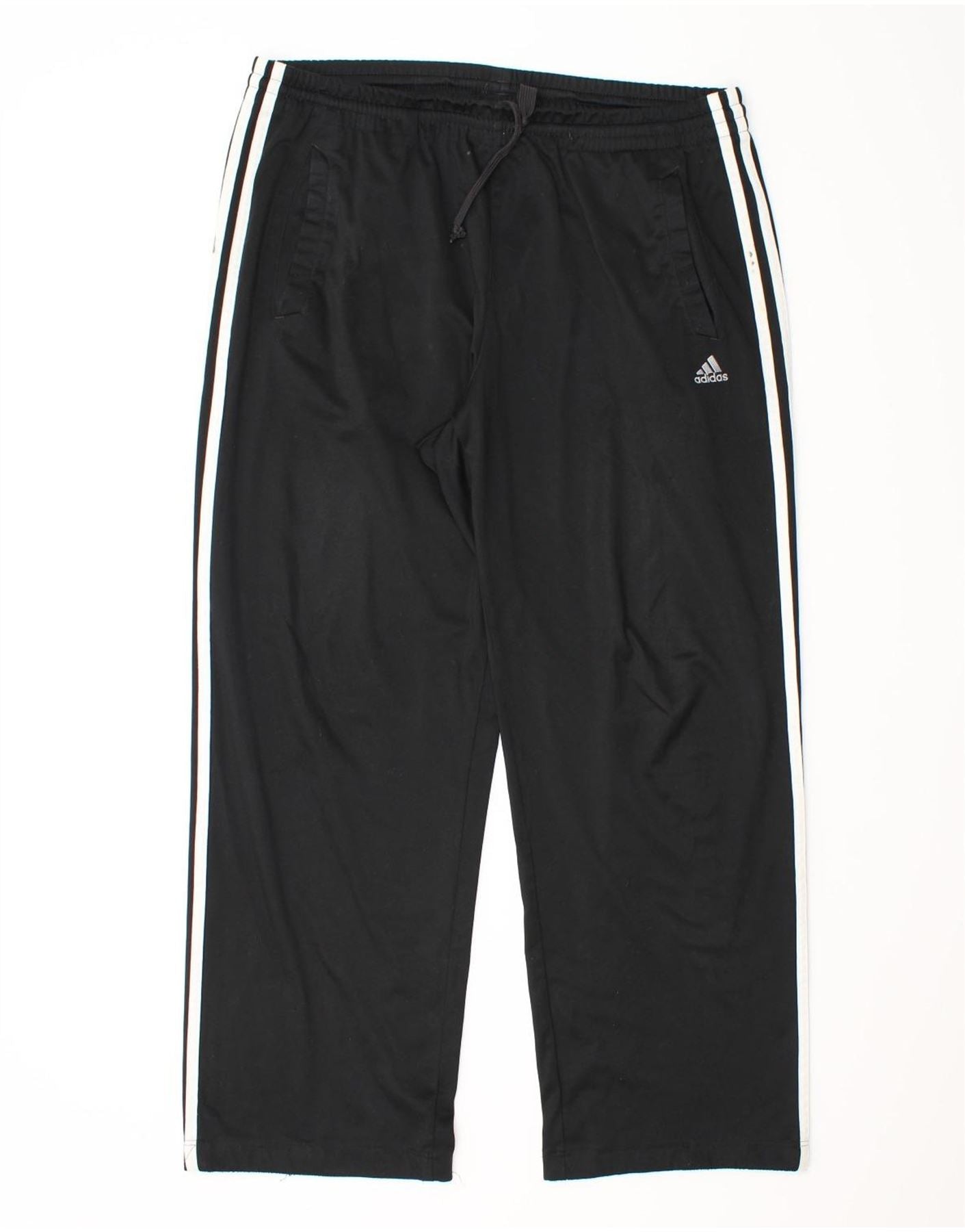 - Descrição da IA: Esta calça casual masculina da Adidas é confeccionada em tecido de malha preto 100% poliéster. Apresentam uma confortável cintura elástica com um prático fecho com cordão. O ajuste regular e o design das pernas retas oferecem facilidade de movimento. Listras brancas percorrem as laterais, adicionando uma estética esportiva clássica. Um logotipo da Adidas fornece um toque sutil de marca. Estes corredores respiráveis são perfeitos para esportes ou uso casual.