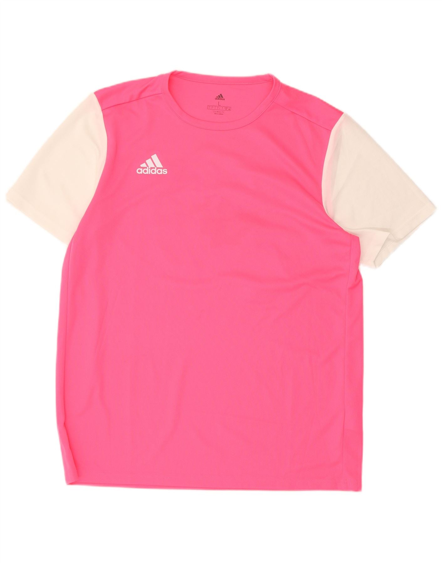 ADIDAS Mens Climalite Graphic T-Shirt Top Grande Rosa Colorblock Poliéster