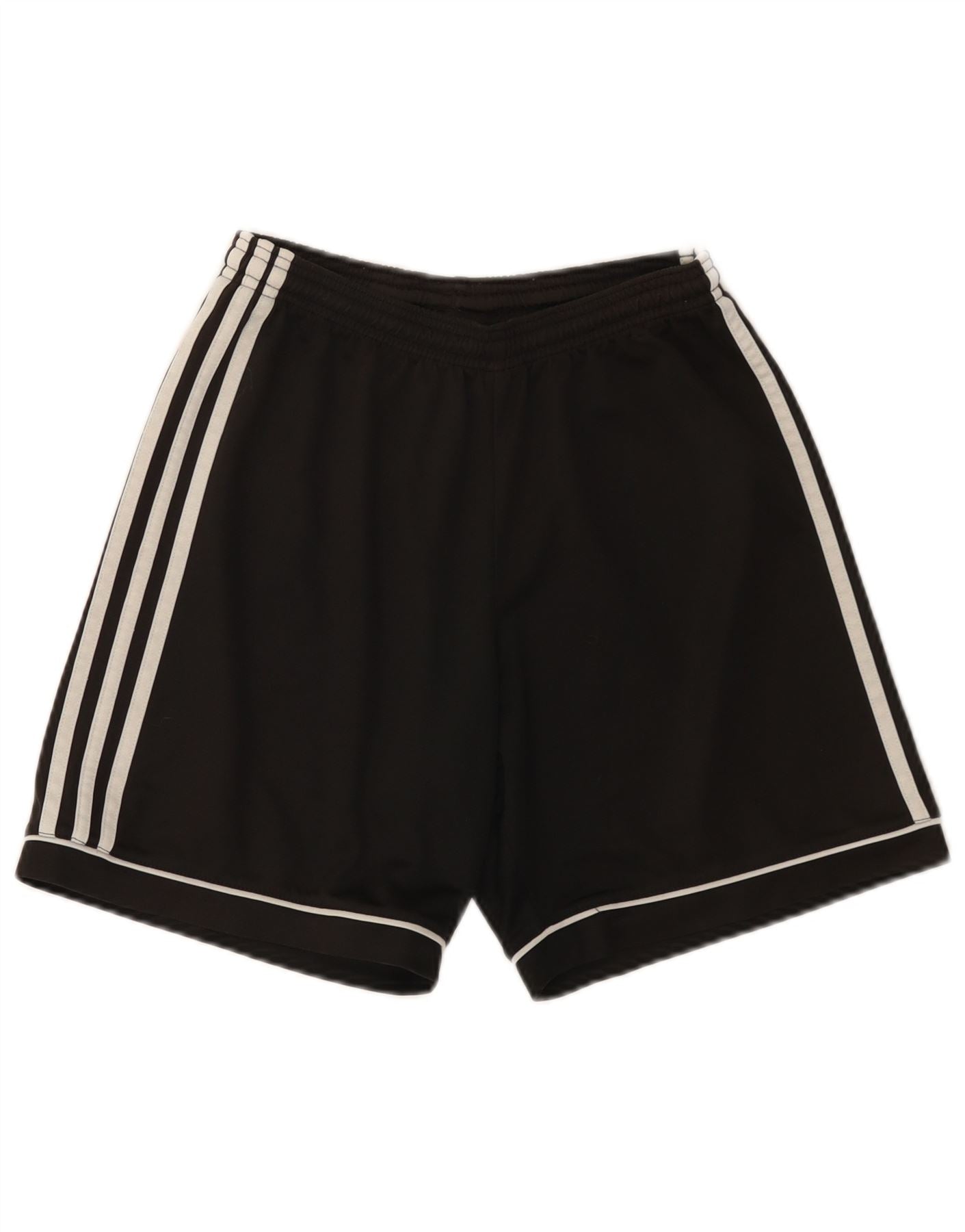 - Descrição da IA: Este short masculino da Adidas é feito de um tecido mesclado respirável na cor preta clássica. Eles apresentam uma cintura elástica para maior conforto e um ajuste atlético regular. Três listras brancas icônicas percorrem cada lado, complementadas por debrum branco ao longo da bainha. O logotipo da Adidas é colocado sutilmente na perna. A tecnologia Climalite garante desempenho de absorção de umidade, ideal para futebol ou esportes.