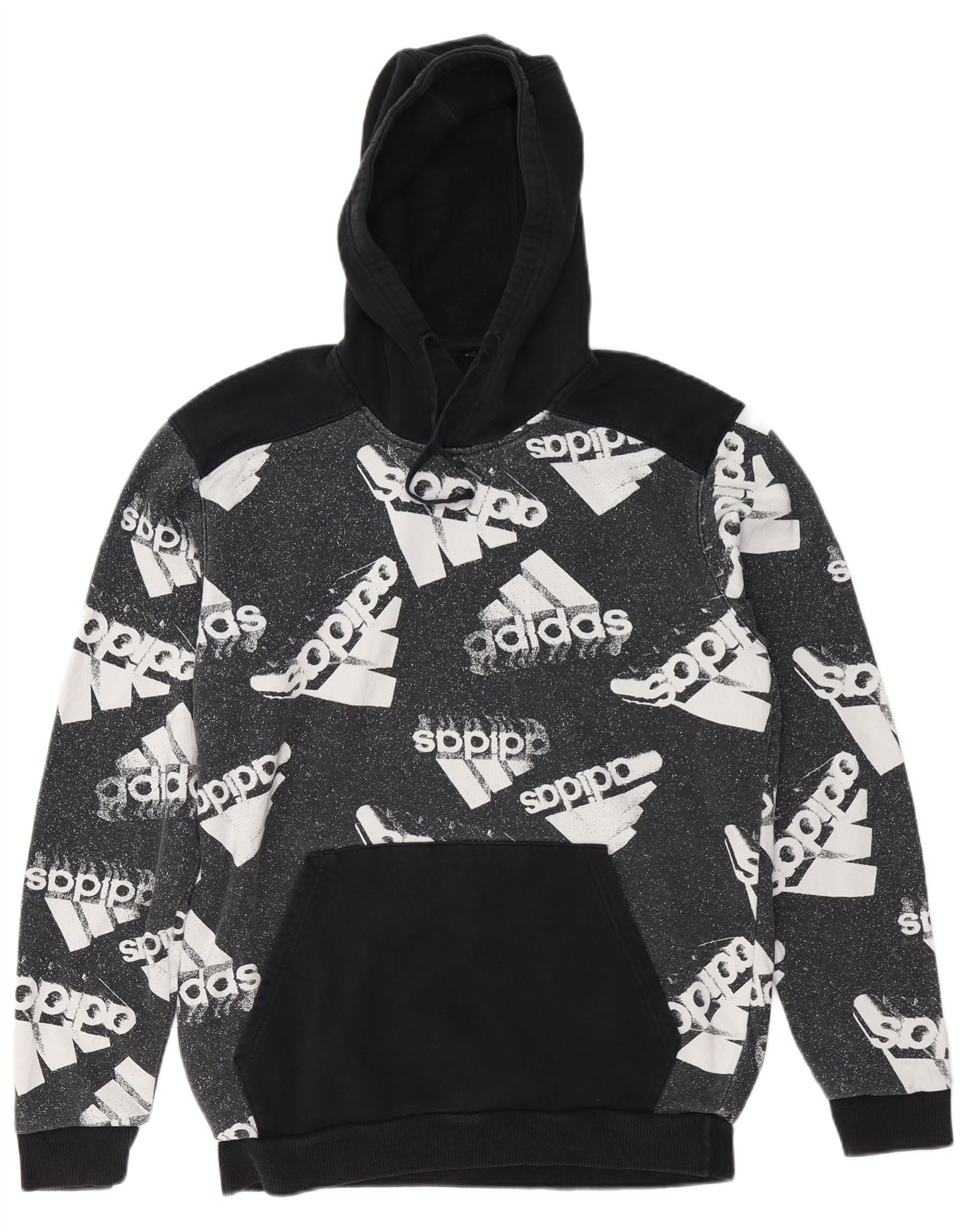 ADIDAS Mens Graphic Hoodie Jumper Grande Algodão Colorblock Preto