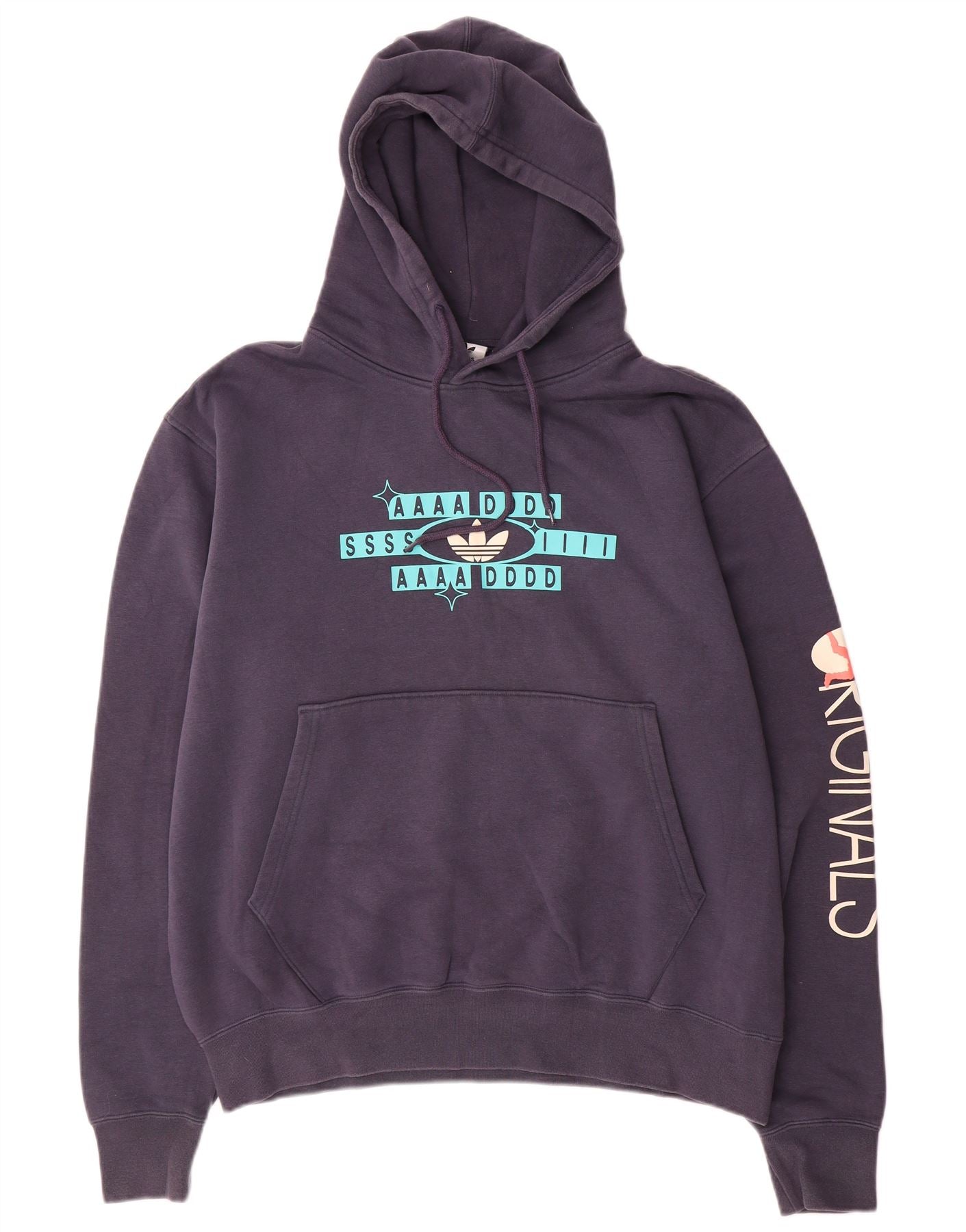 ADIDAS Mens Graphic Hoodie Jumper Grande Algodão Azul Marinho