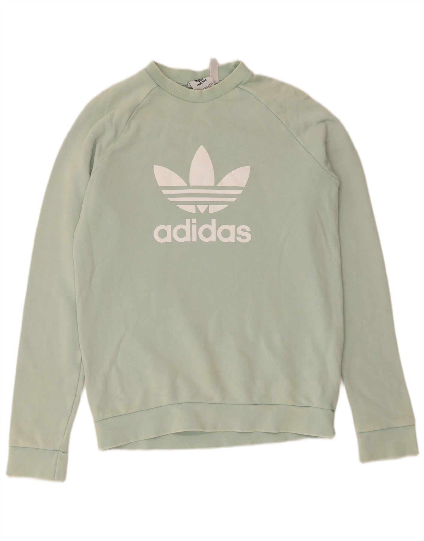Adidas Mens Graphic Moletom Jumper Pequeno Algodão Turquesa
