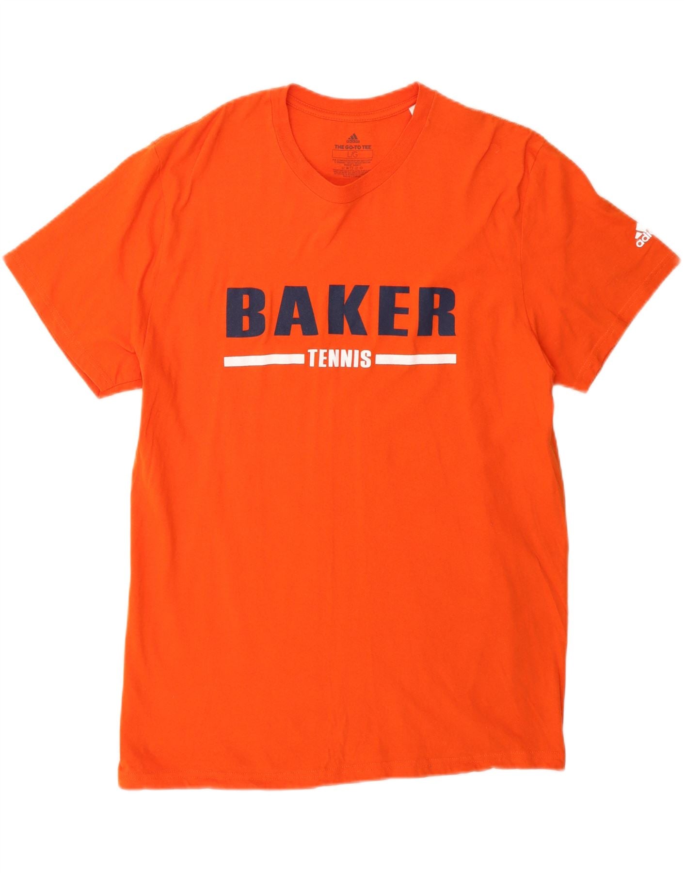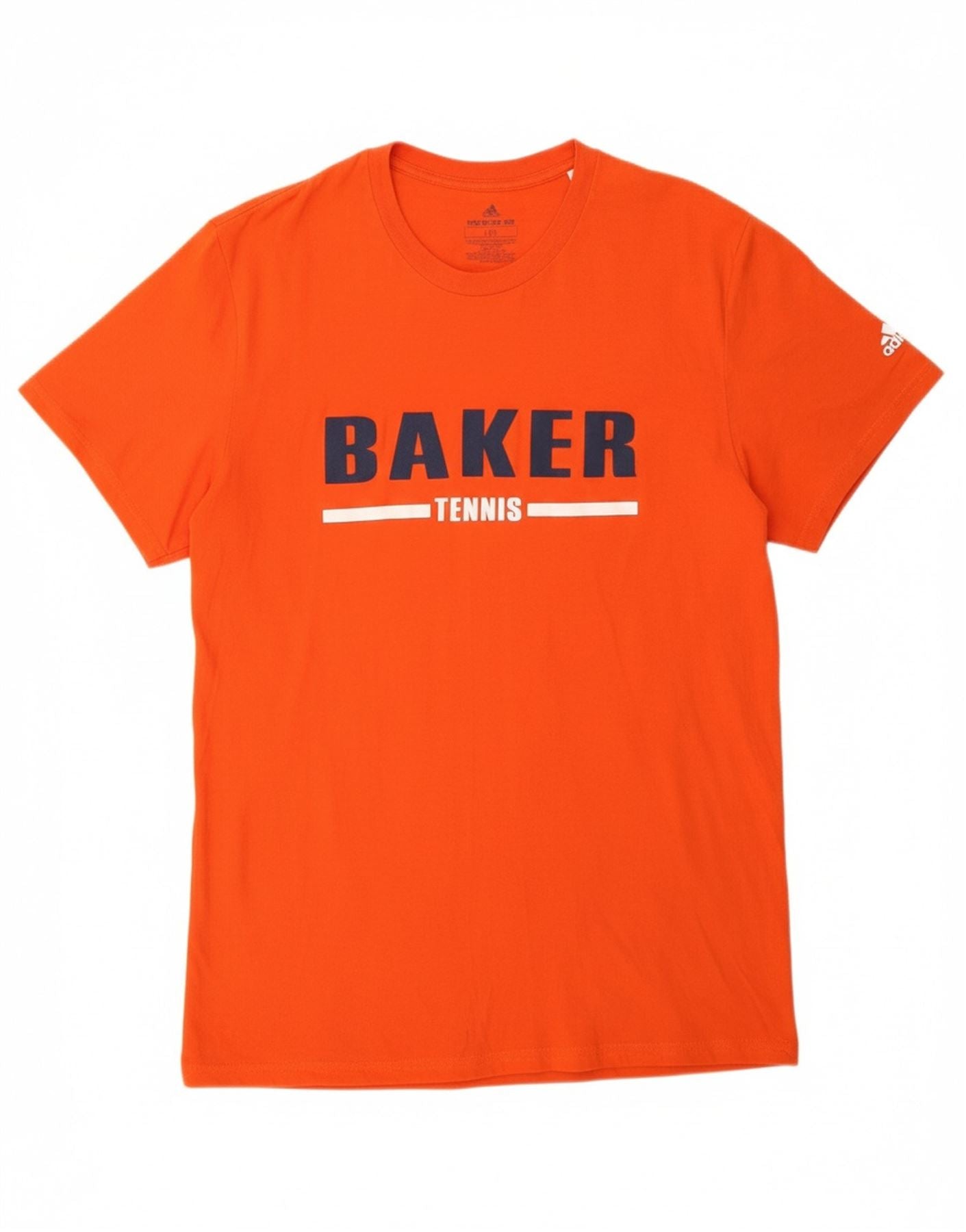 - Descrição da IA: Esta camiseta gráfica masculina da Adidas é confeccionada em jersey de algodão laranja macio e respirável. Possui gola redonda clássica e mangas curtas para um look atemporal. O ajuste regular garante conforto e facilidade de movimento. Um logotipo proeminente oferece um toque distinto de estilo universitário, tornando-o uma escolha versátil e leve para uso diário.