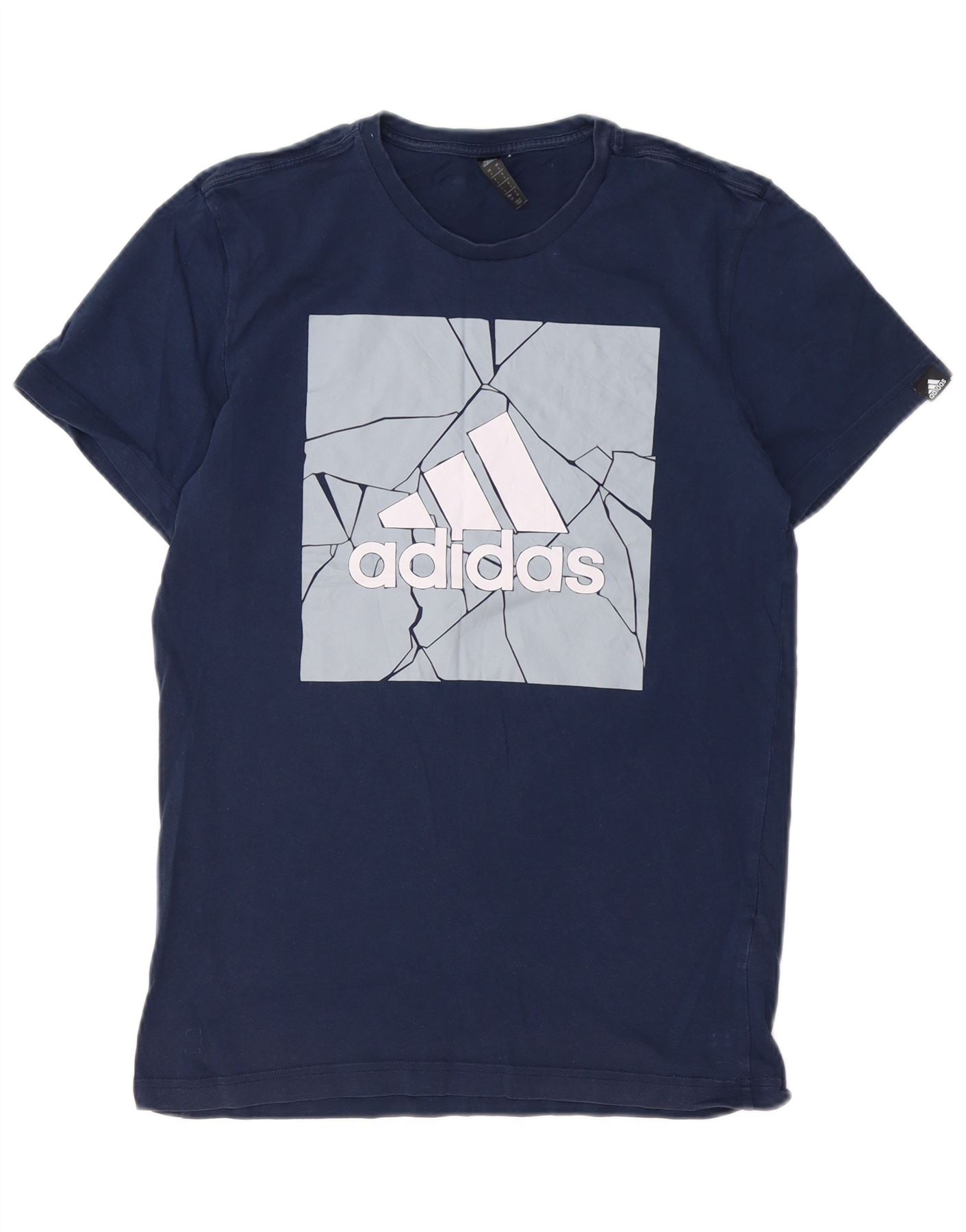 ADIDAS Mens Graphic T-Shirt Top Pequeno Algodão Azul Marinho