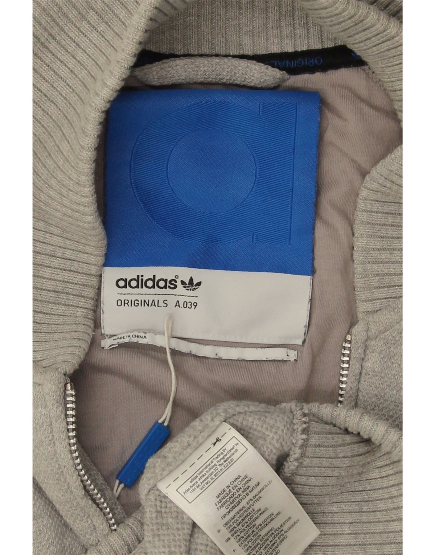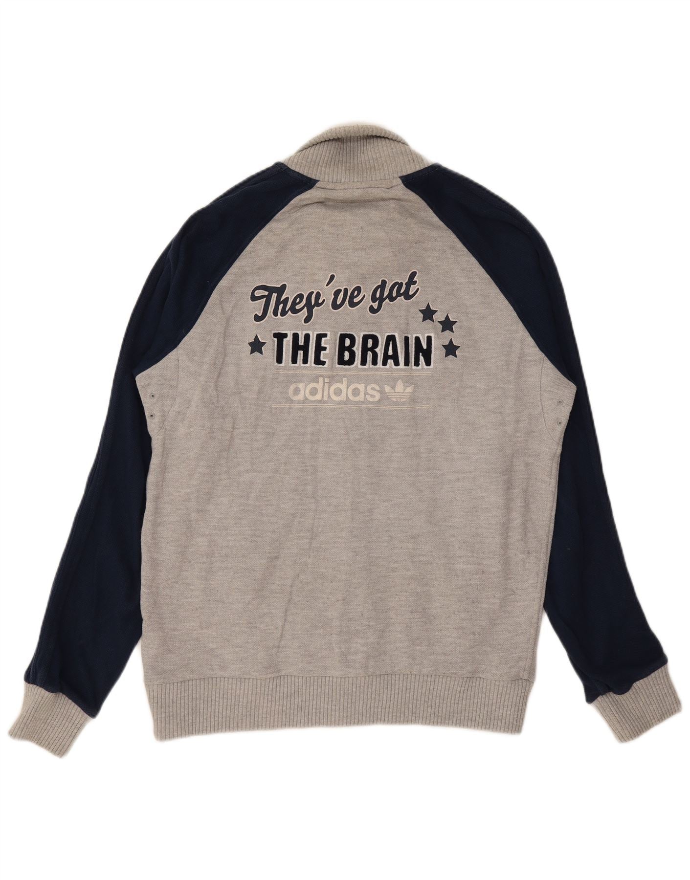 ADIDAS Mens Graphic Tracksuit Top Jacket Grande Cinza Colorblock Algodão
