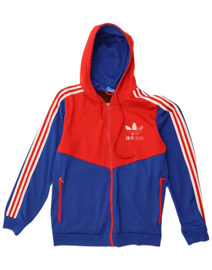 ADIDAS Suéter masculino com capuz e zíper gráfico grande azul poliéster