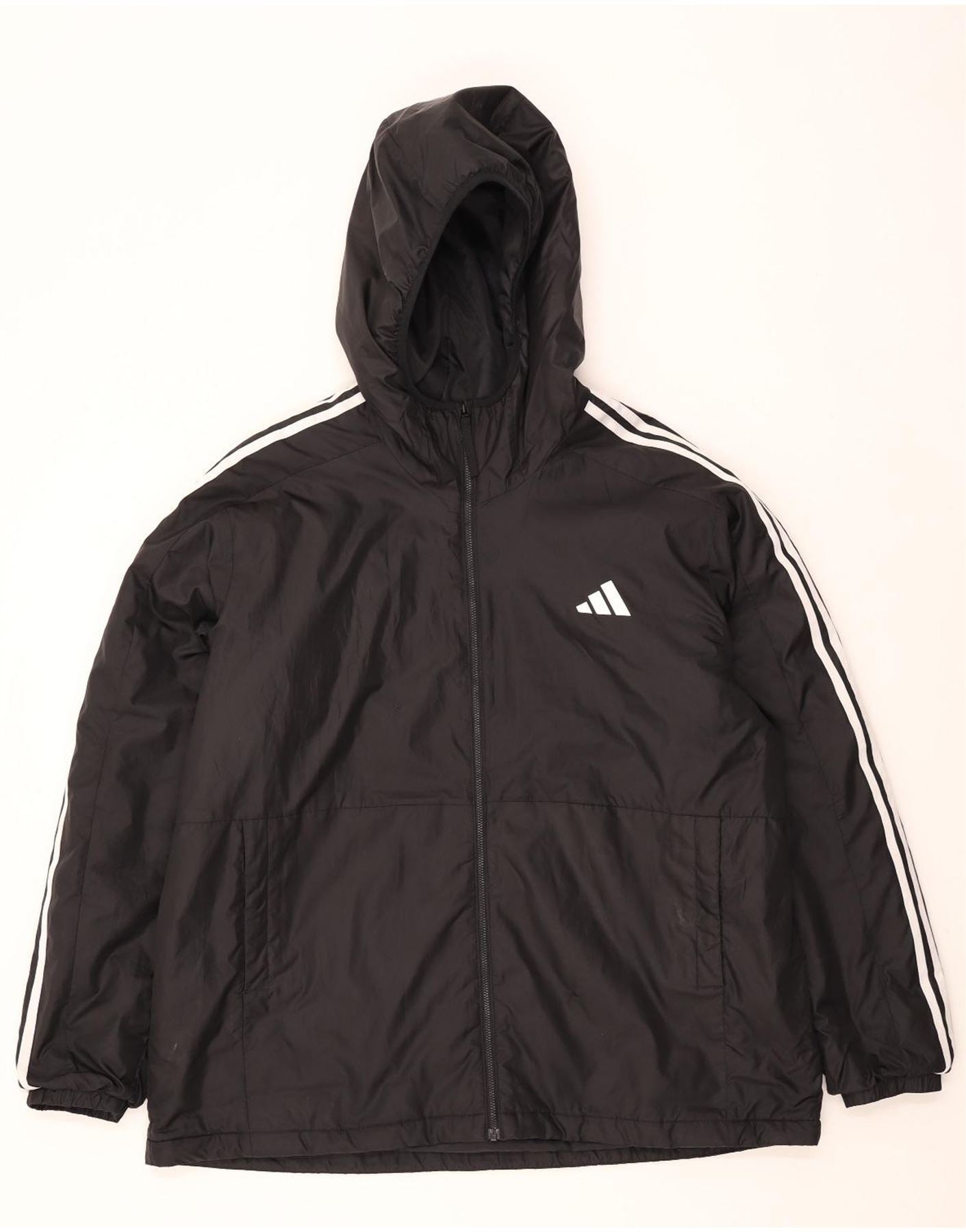 Jaqueta corta-vento masculina Adidas com capuz UK 44 2XL poliéster preto