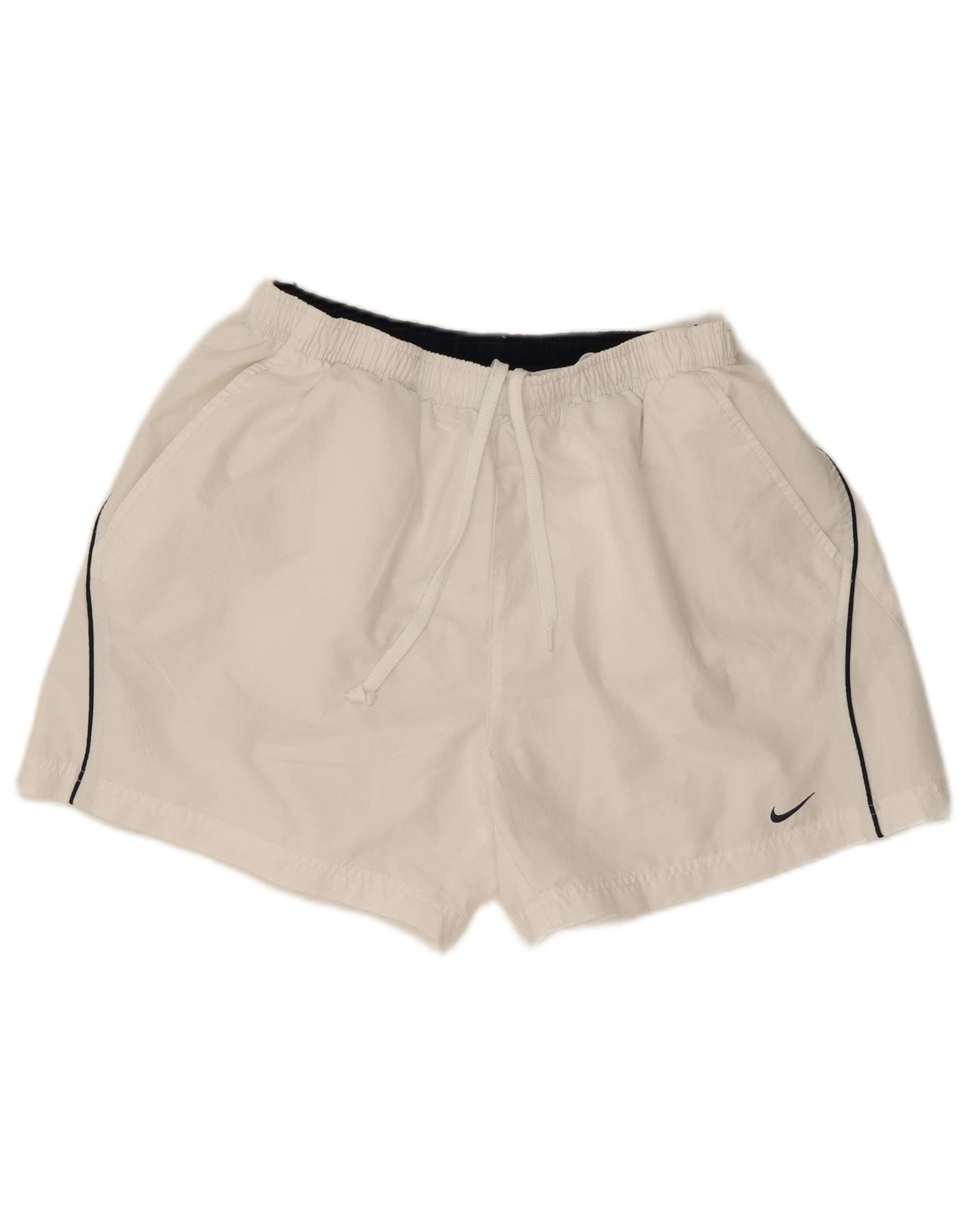 - Descrição da IA: Este short casual masculino da Nike é feito de poliéster tecido branco leve. Eles apresentam uma cintura elástica com cordão para um ajuste confortável. O ajuste atlético regular inclui bolsos práticos e forro completo para maior conforto. Um sutil logotipo da Nike completa o design esportivo, perfeito para uso ativo.