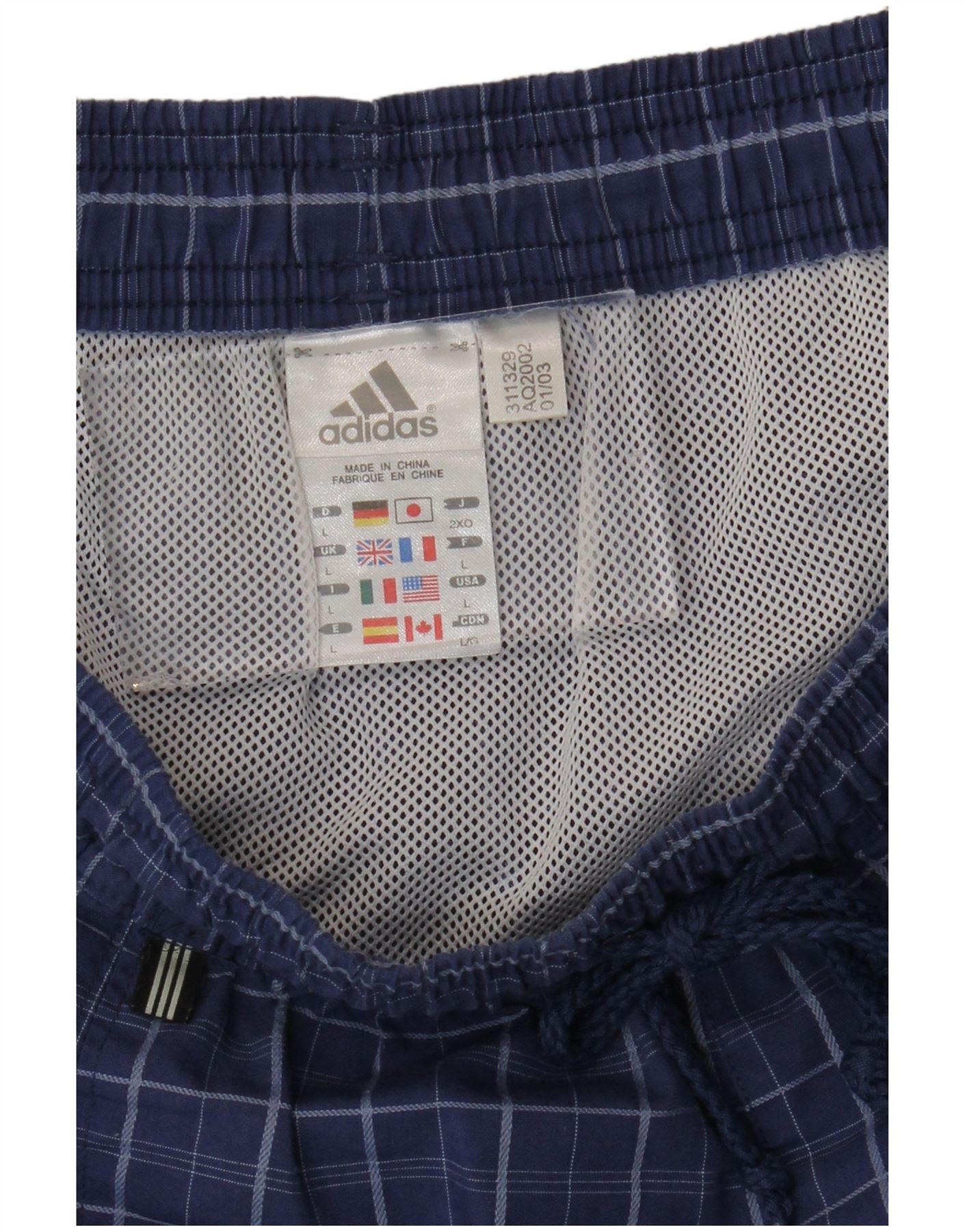 Shorts de natação masculinos ADIDAS grande poliéster xadrez azul
