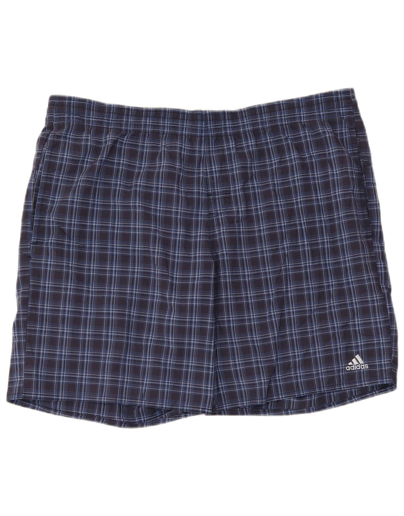 Shorts de natação masculinos Adidas grande poliéster xadrez azul