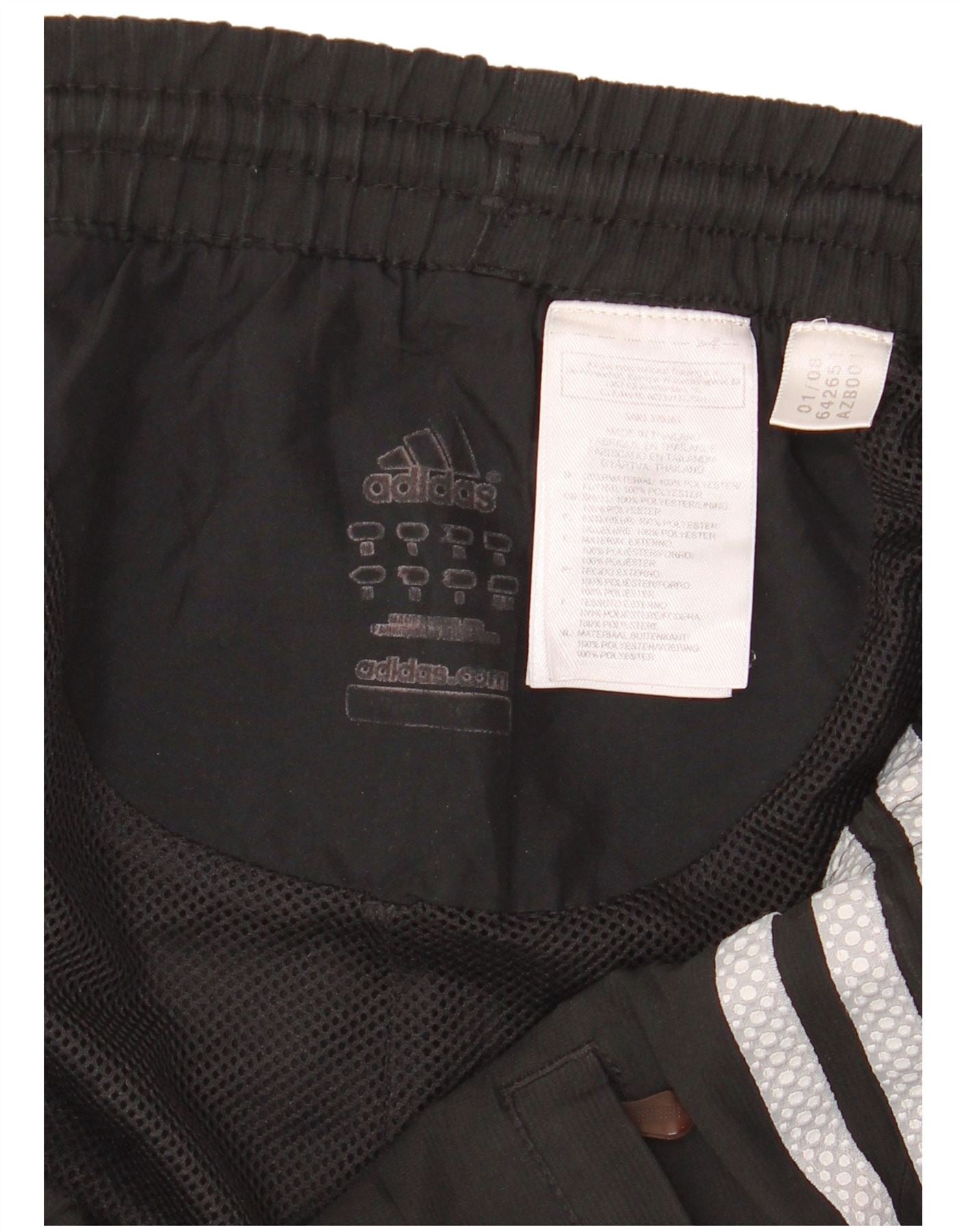 - Descrição da IA: As calças corta-vento masculinas da Adidas são confeccionadas em tecido leve de poliéster preto. Eles apresentam uma cintura elástica para maior conforto. O ajuste regular afunila em direção ao tornozelo. Listras brancas clássicas descem de cada lado. Bolsos práticos e zíperes nos tornozelos melhoram a funcionalidade. Um logotipo sutil proporciona reconhecimento da marca. Esses corredores são ideais para esportes ou uso casual.