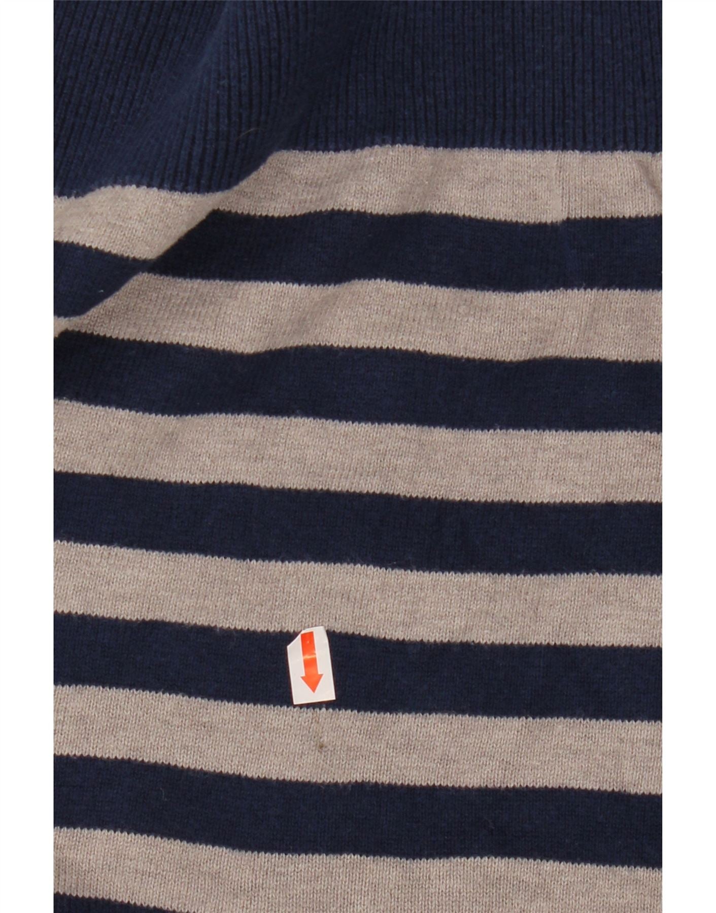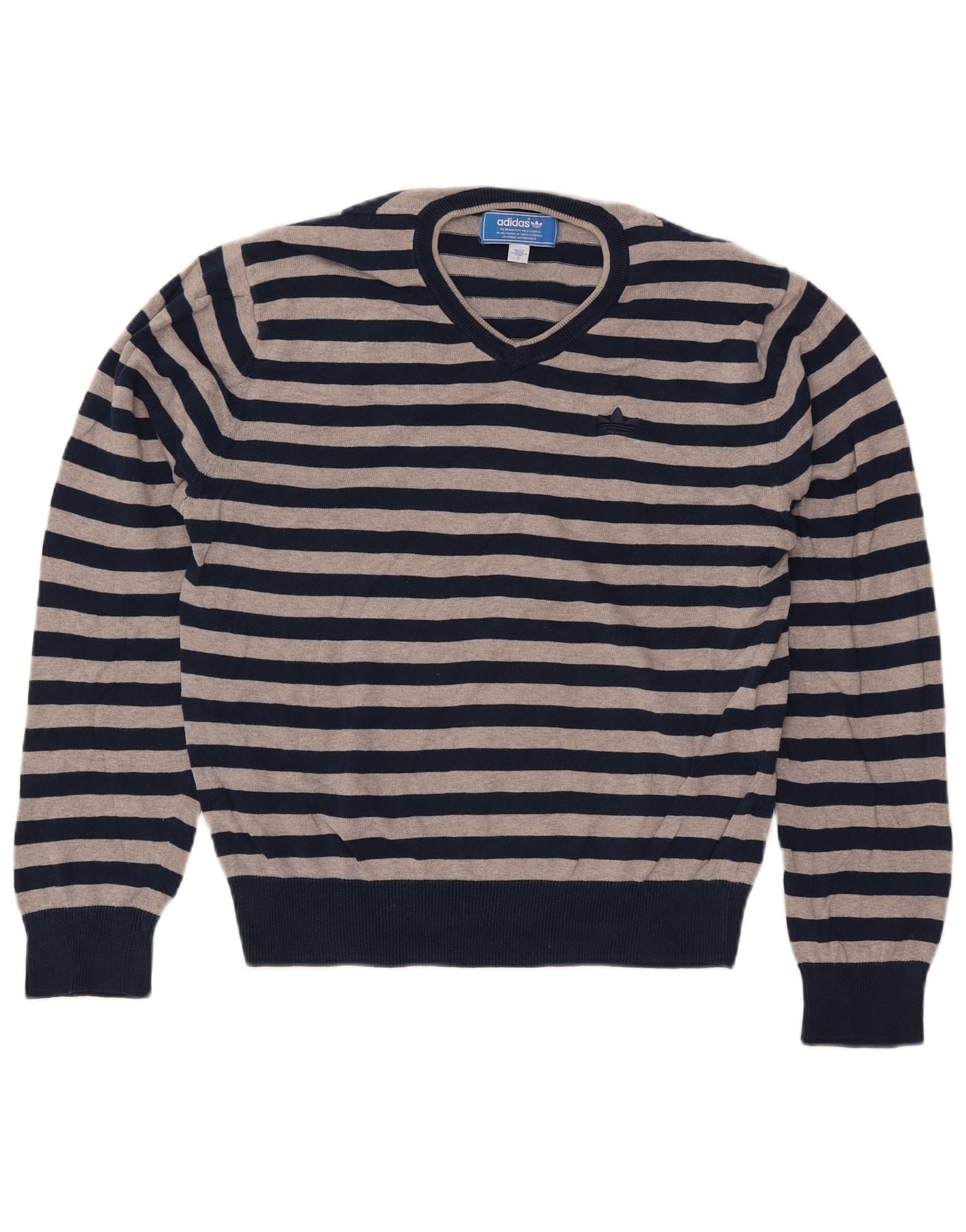 ADIDAS Suéter masculino com decote em V pequeno listrado azul marinho de algodão