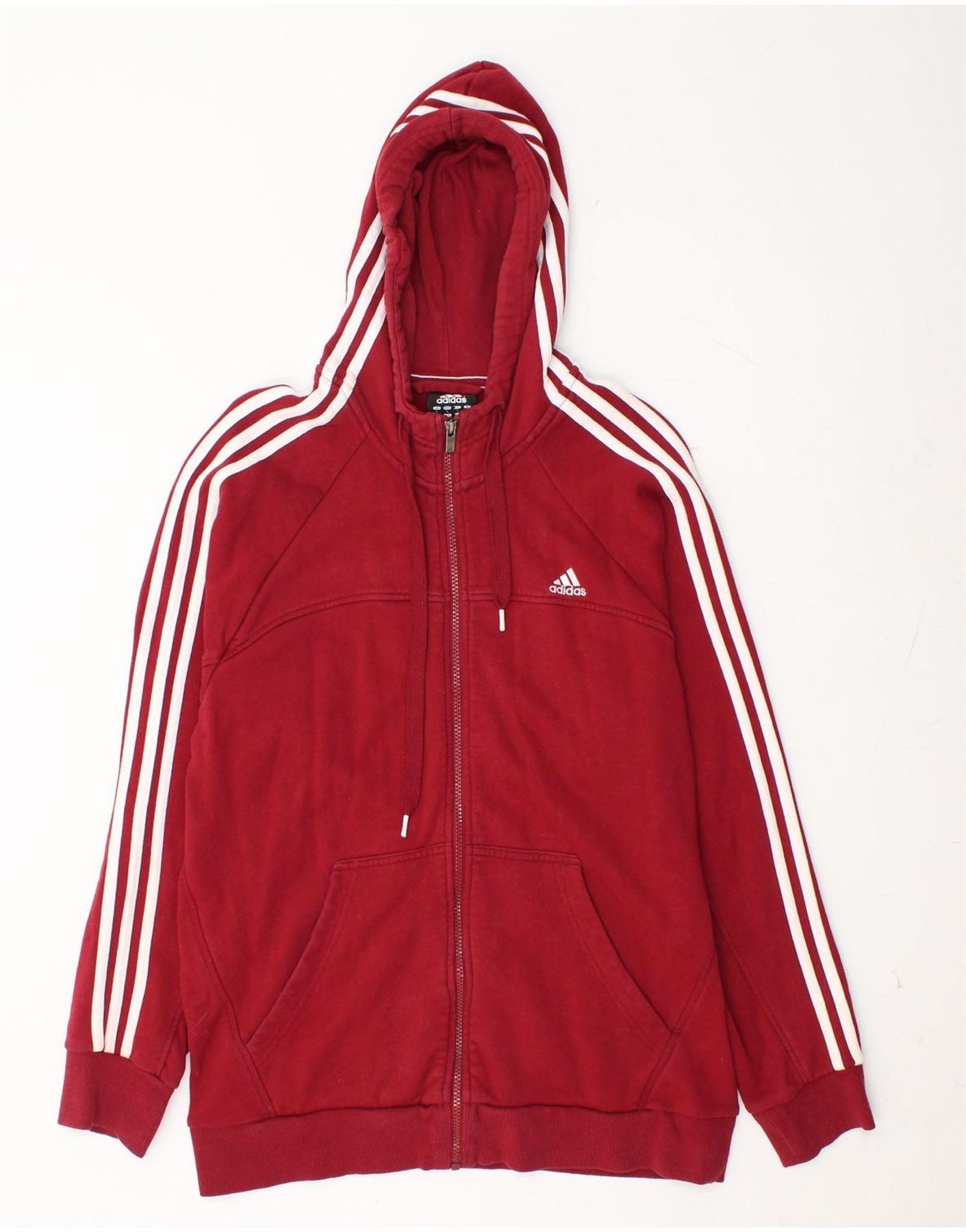 ADIDAS Mens Zip Hoodie Suéter Grande Algodão Vermelho