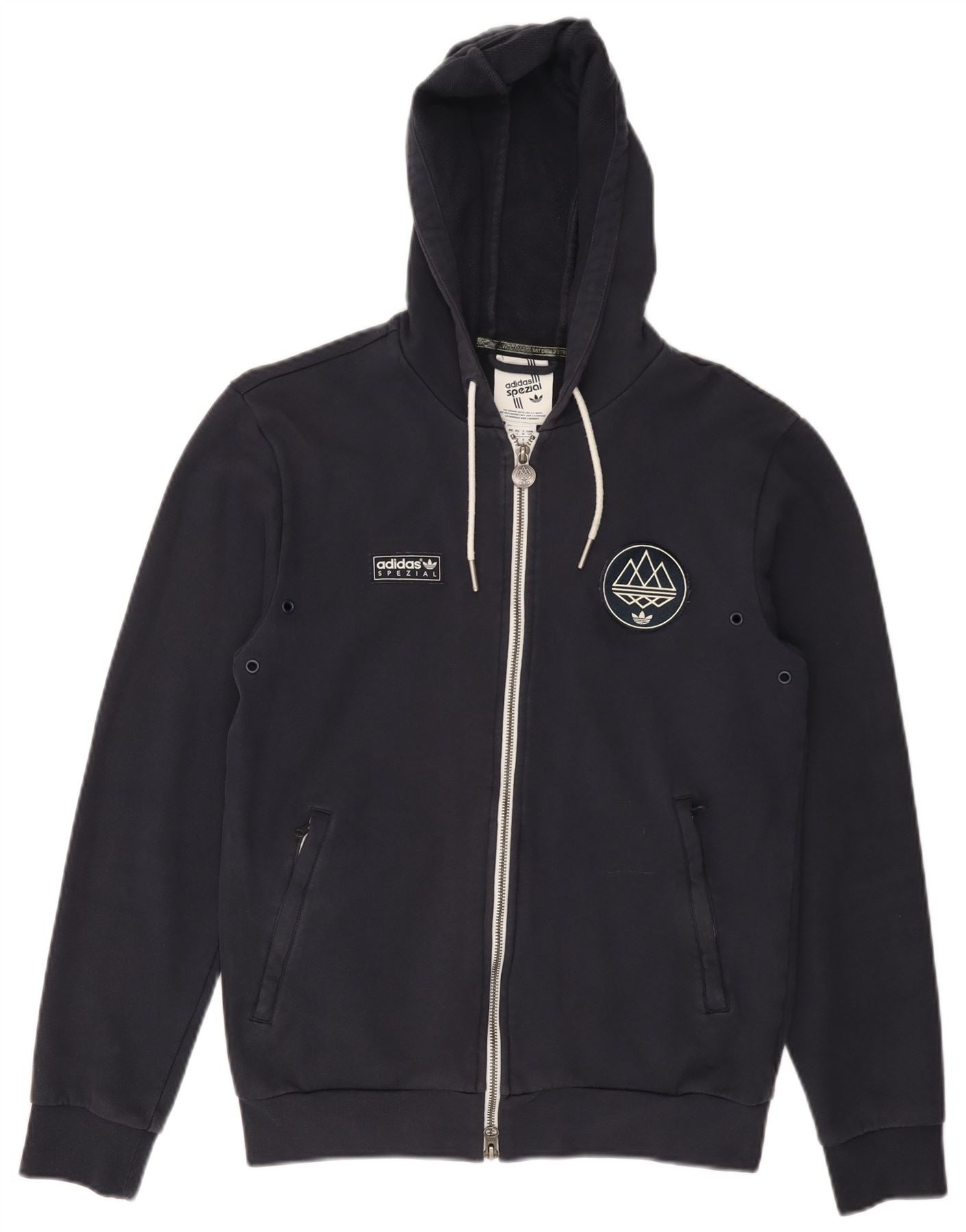 ADIDAS Suéter masculino com capuz e zíper pequeno algodão azul marinho