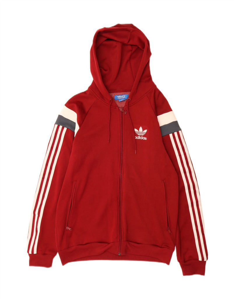 ADIDAS Mens Zip Hoodie Sweater Pequeno Vermelho Colorblock Poliéster