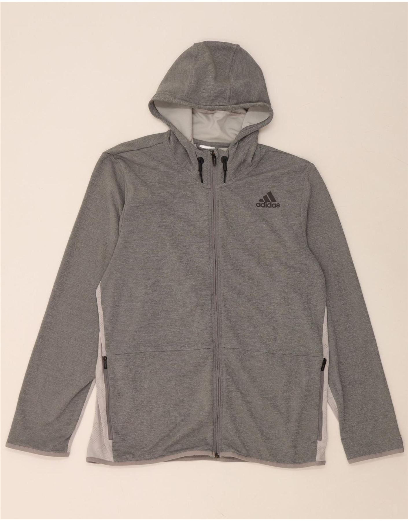 ADIDAS Mens Zip Hoodie Sweater XL Cinza Poliéster