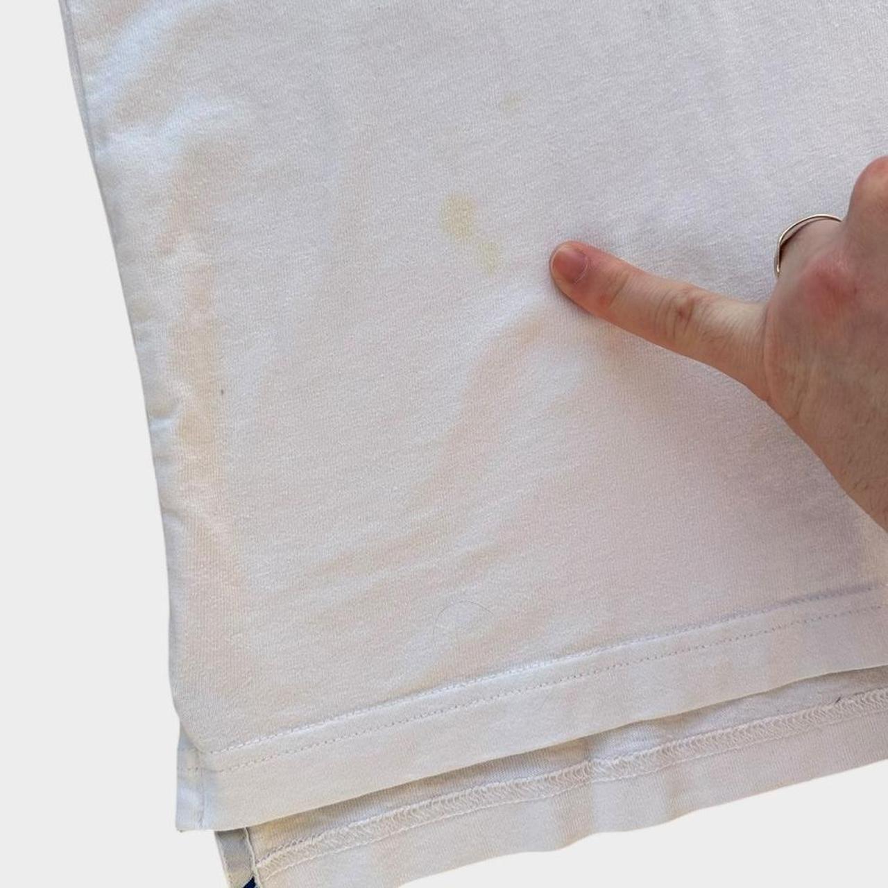 Adidas do início dos anos 2000 soletra camiseta bordada em branco com grande logotipo no peito