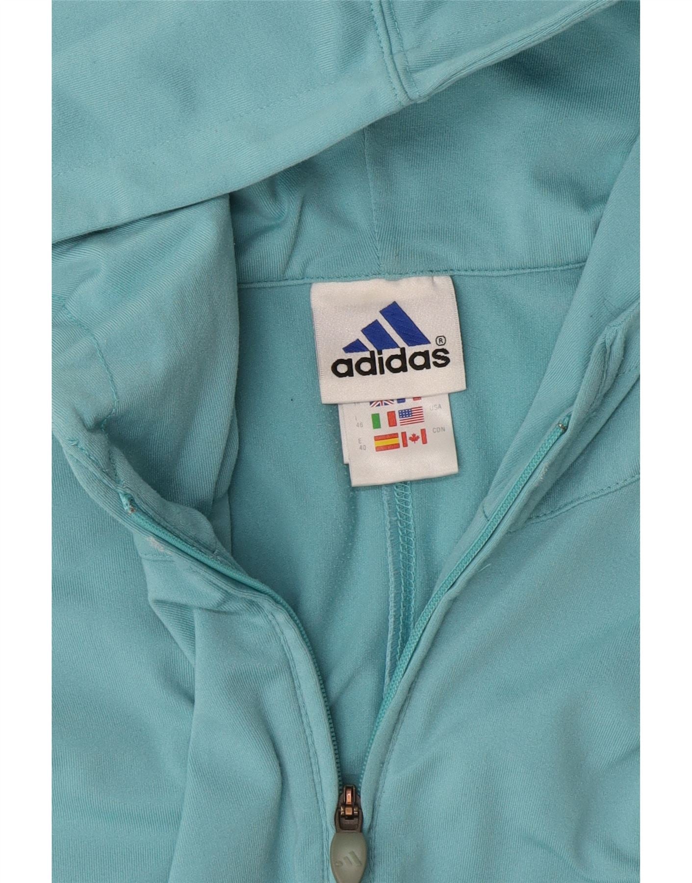 Home > mulheres > Roupas Depop > Suéter feminino com capuz e zíper de manga 3/4 Adidas UK 14 poliamida azul médio
