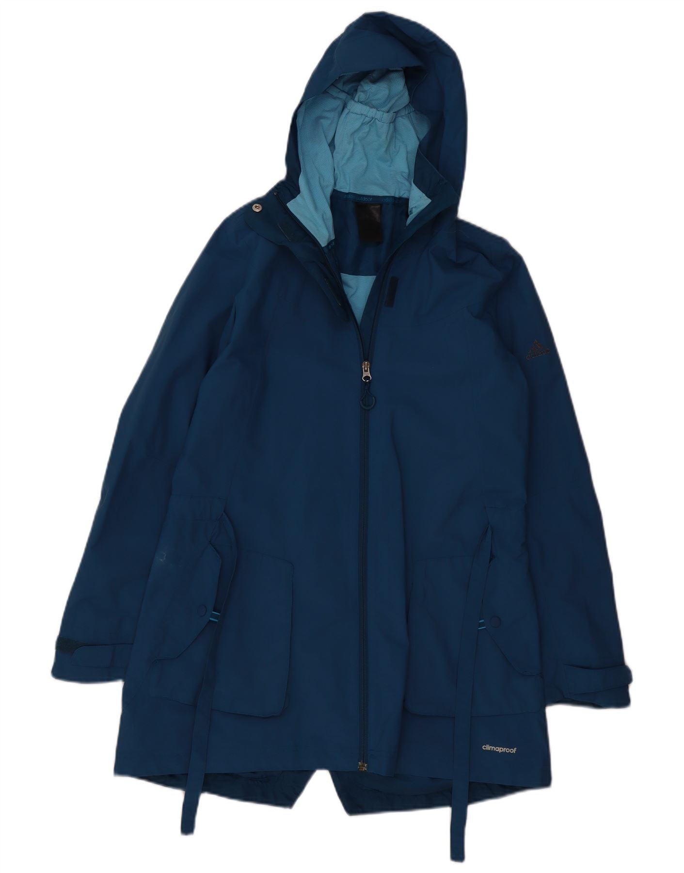 ADIDAS Womens Clima Proof Hooded Windbreaker Coat UK 14 Medium Blue