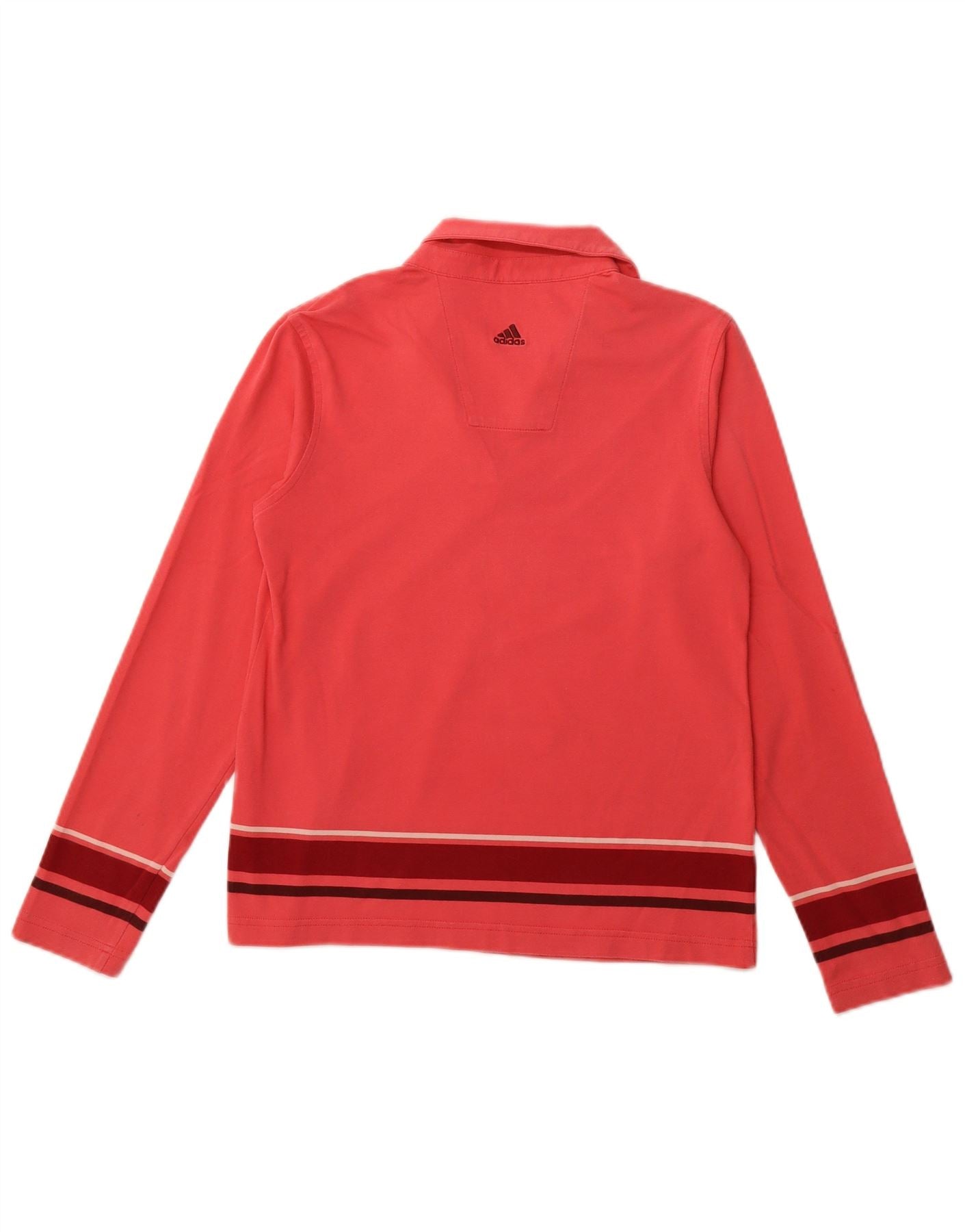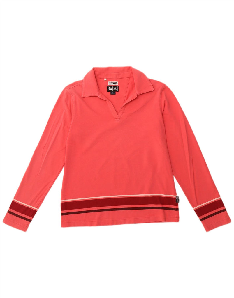ADIDAS Womens Climalite Long Sleeve Polo Shirt UK 12 Medium Pink Striped