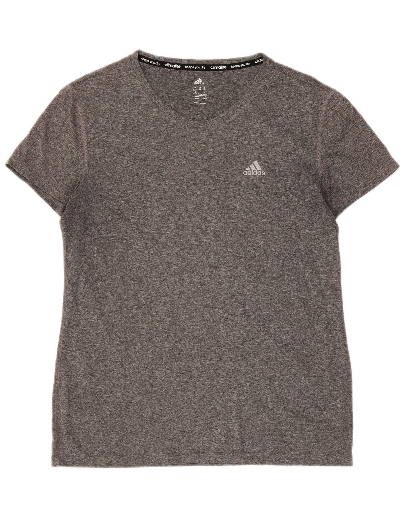 Camiseta Adidas Mulher Climalite Manga Curta Top UK 12/14 Cinza Médio