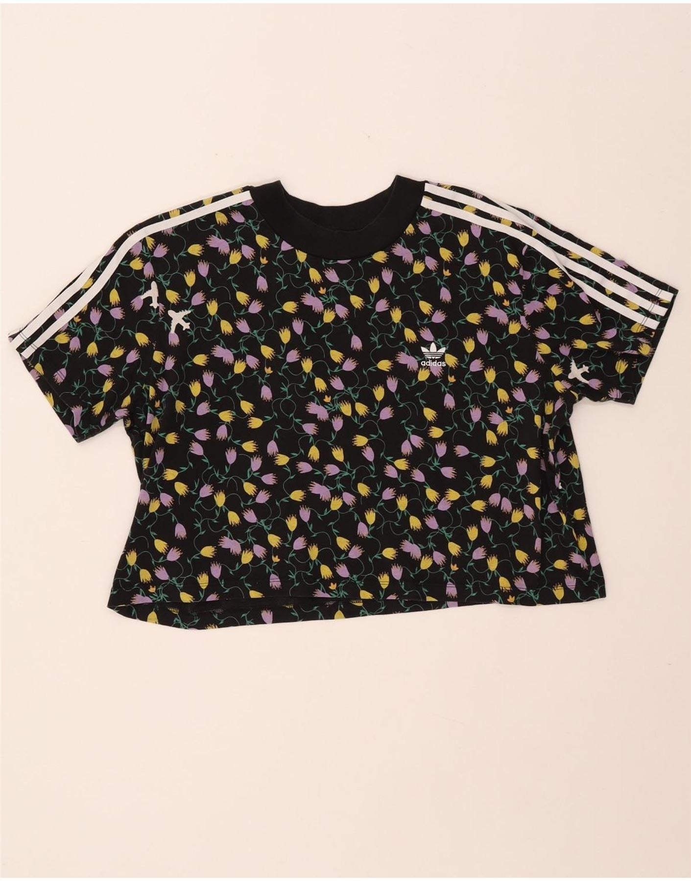 ADIDAS Camiseta Feminina Crop Graphic Top UK 18 XL Preto Floral Algodão