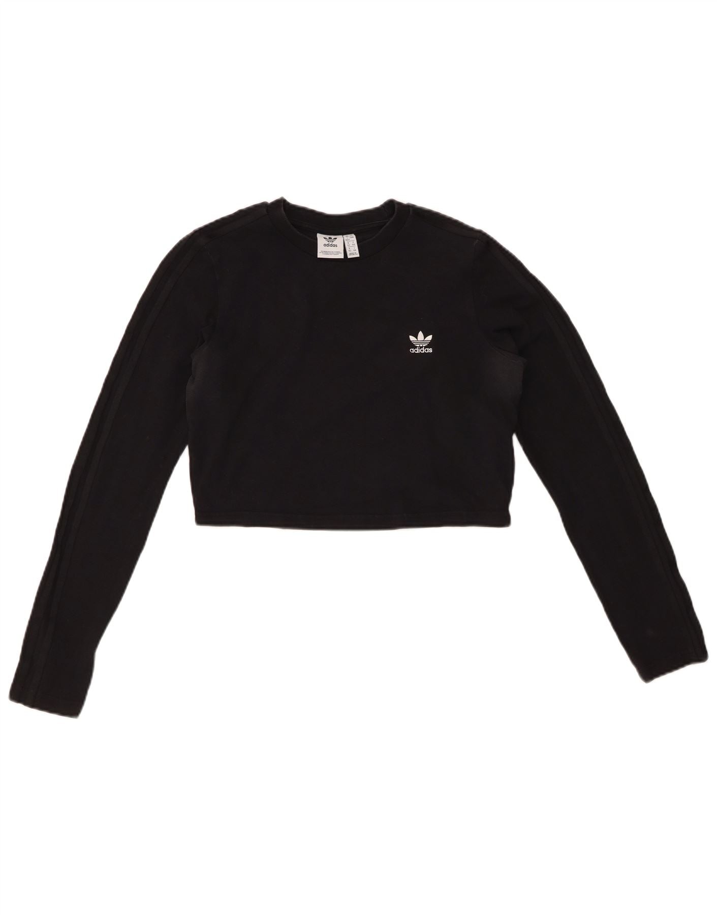 ADIDAS Womens Crop Top Manga Longa UK 16 Grande Algodão Preto