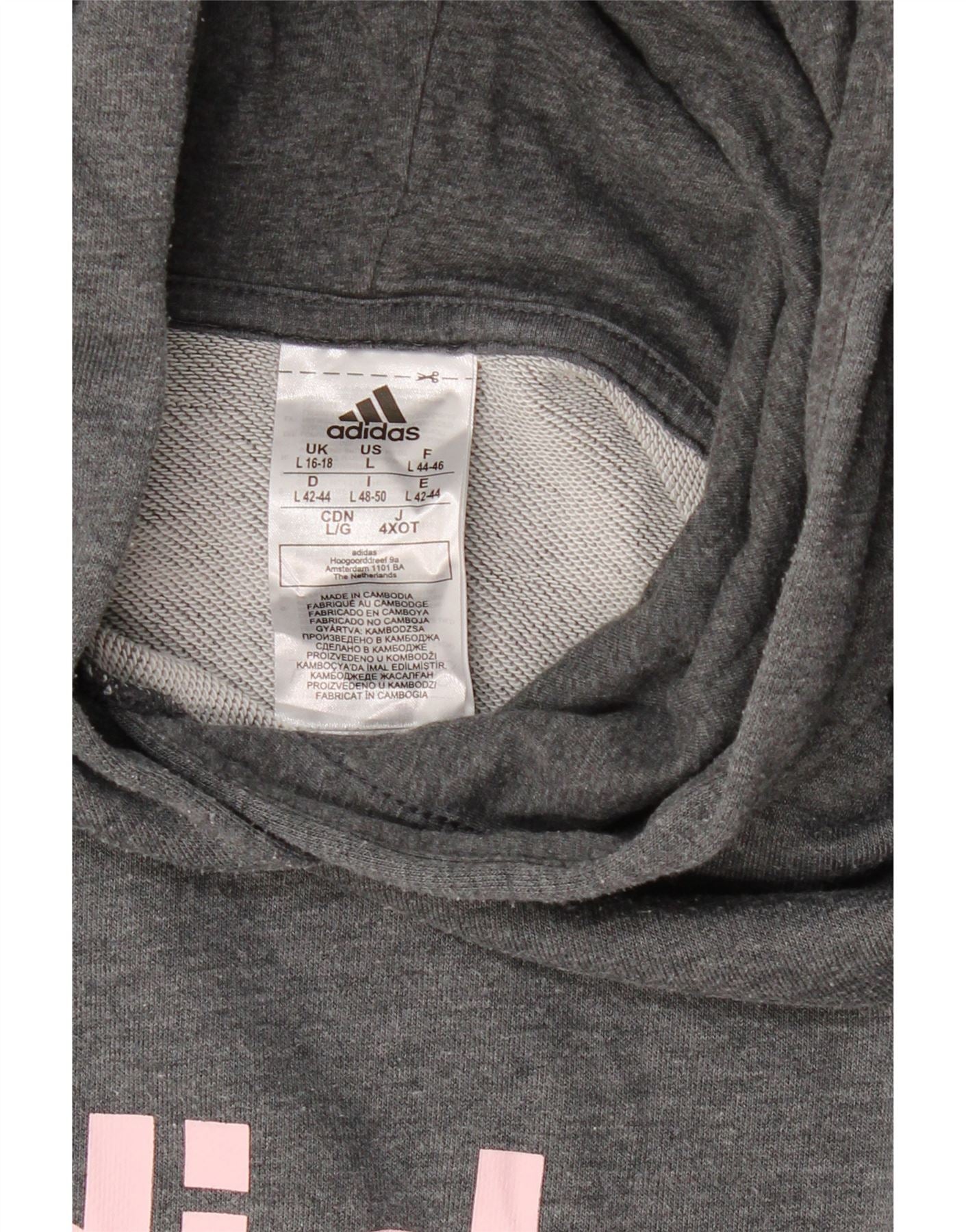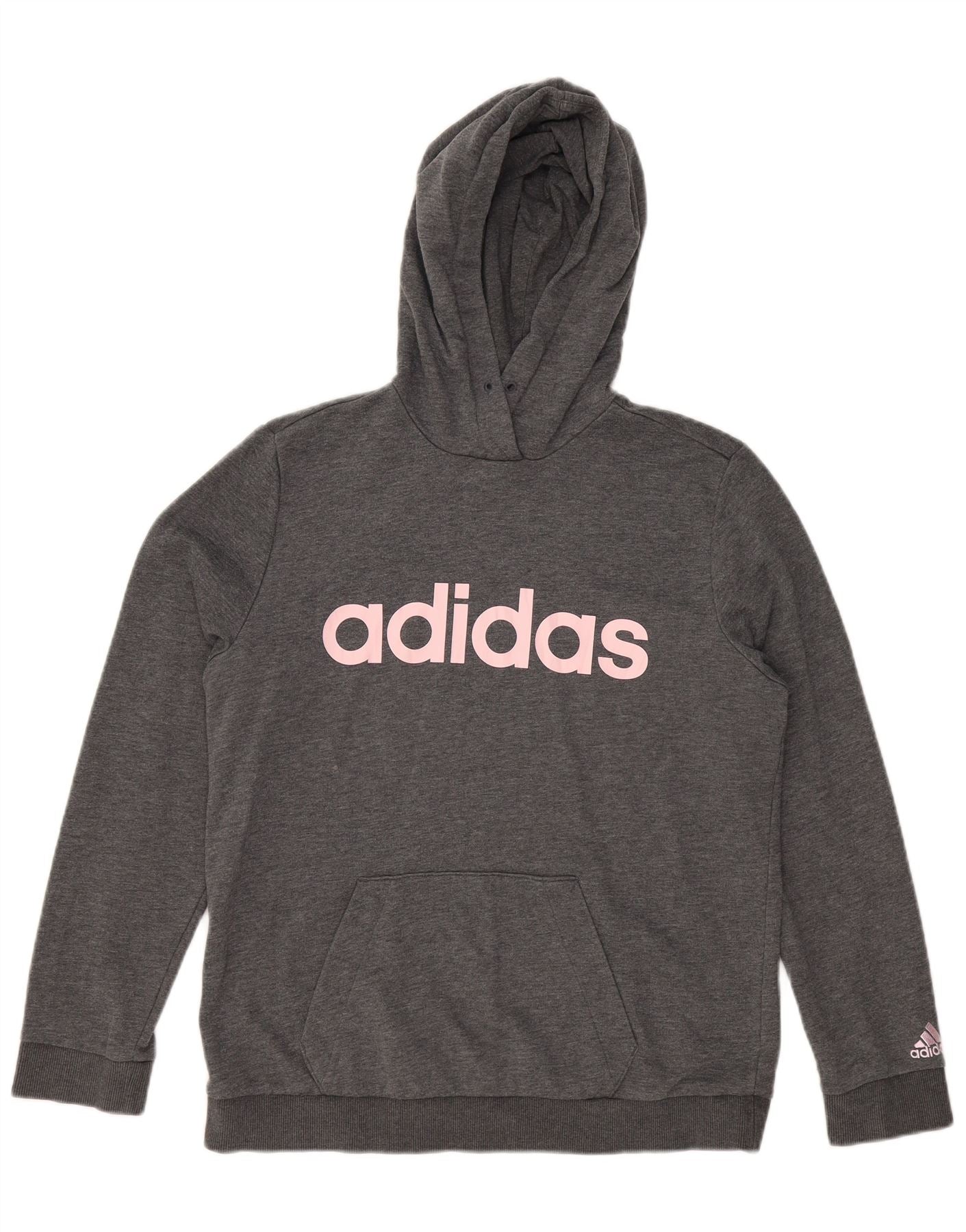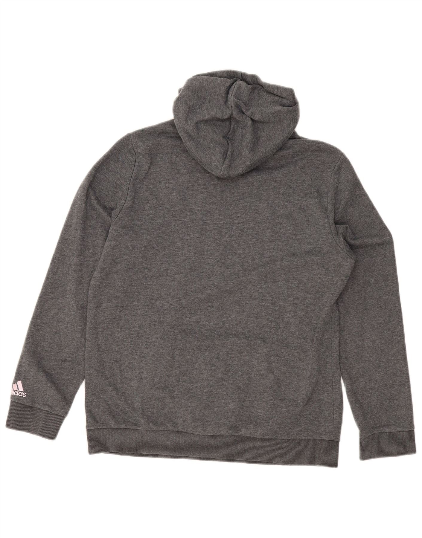 ADIDAS Womens Graphic Hoodie Jumper UK 16/18 Grande Cinza Poliéster