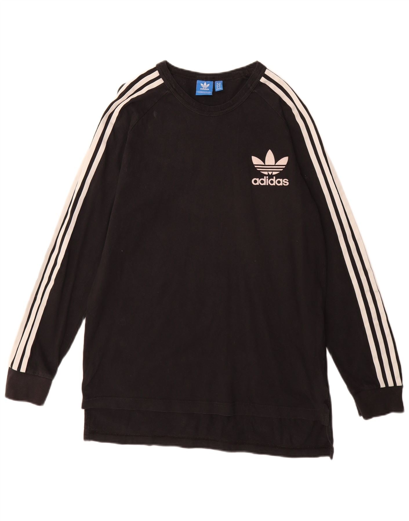 ADIDAS Womens Graphic Long Sleeve T-Shirt Dress UK 14 Medium Black Cotton