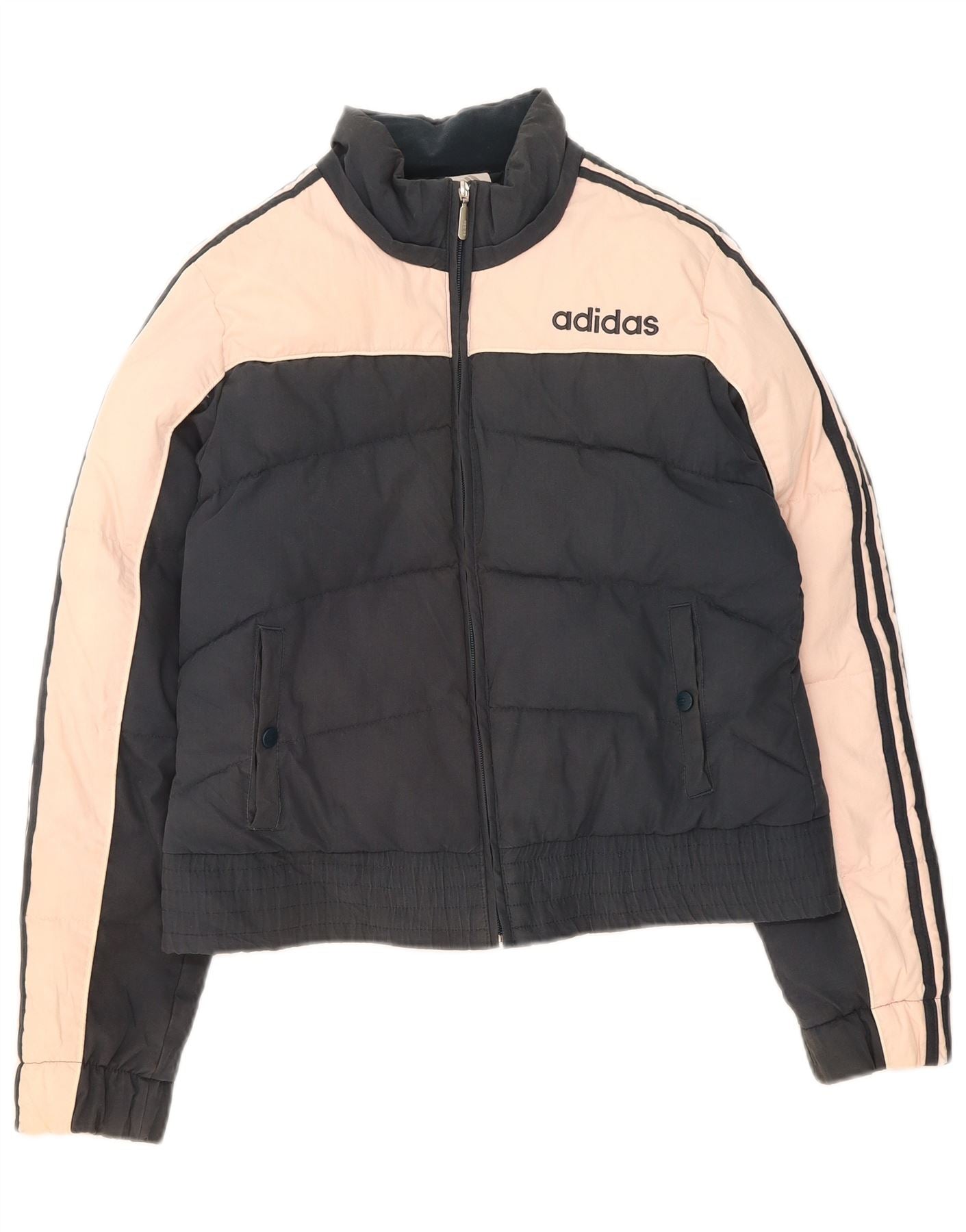 ADIDAS Womens Graphic Padded Jacket UK 12 Médio Azul Marinho Colourblock