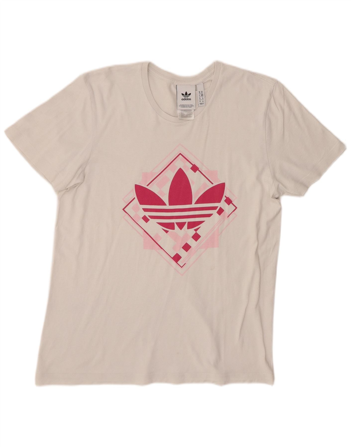 - Descrição da IA: Esta camiseta feminina com estampa da Adidas é confeccionada em tecido jersey macio e esbranquiçado. Possui decote redondo clássico e mangas curtas. O ajuste regular garante conforto e facilidade de movimento. Um ousado logotipo Trefoil rosa adorna a frente, adicionando um elemento visual marcante. Este top leve e confortável é perfeito para uso diário.